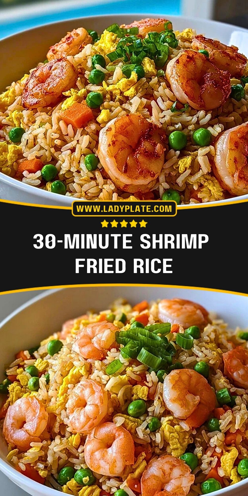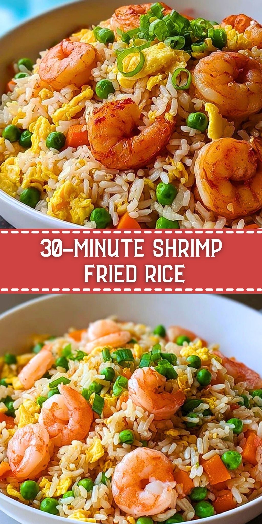 This 30-Minute Shrimp Fried Rice is a quick and flavorful dish perfect for weeknight dinners. Made with tender shrimp, fluffy jasmine rice, peas, scrambled eggs, and a savory soy-sesame finish, it’s a healthier homemade alternative to takeout—all in one skillet.
