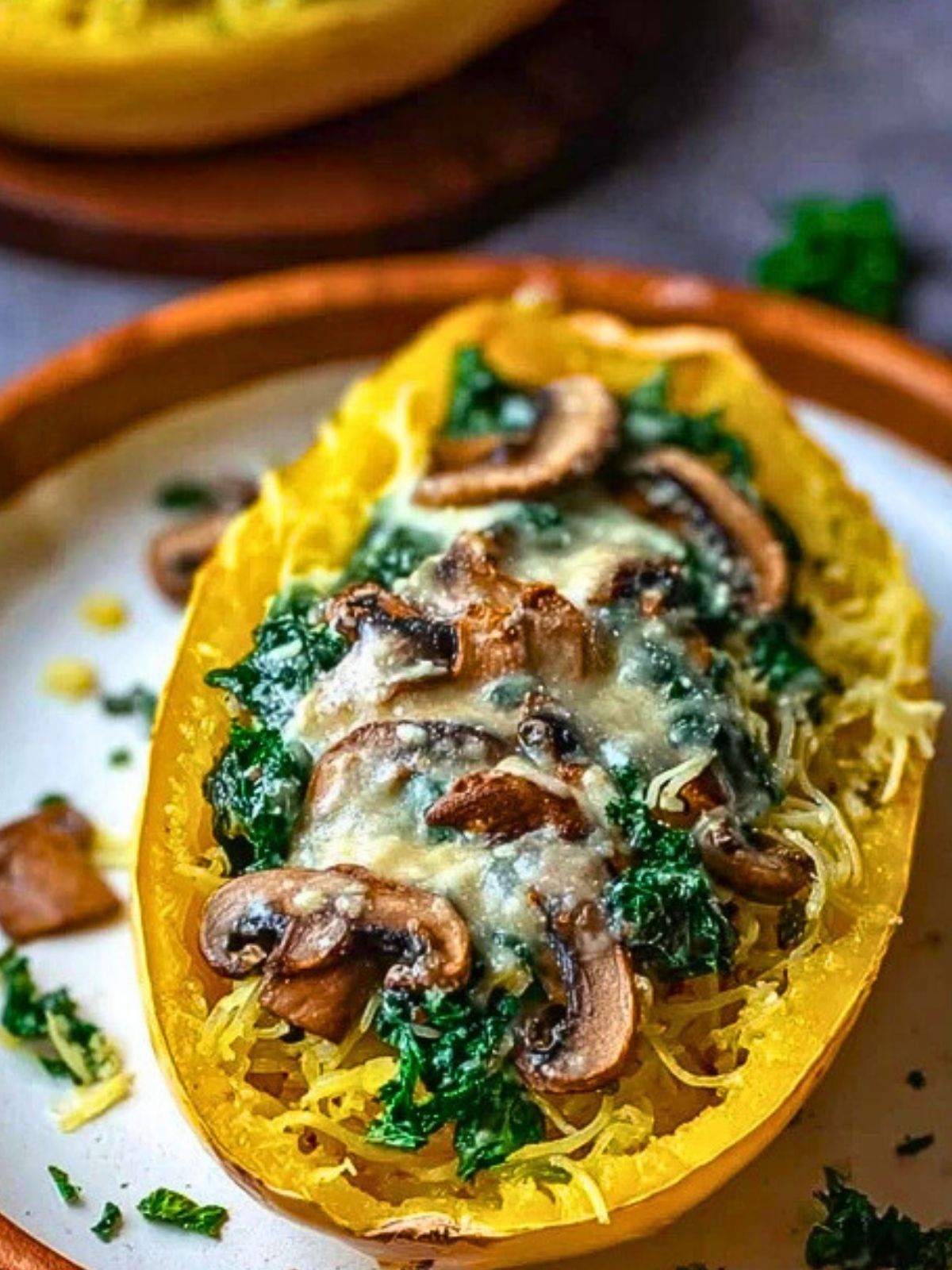 Looking for a comforting, low-carb dinner that doesn’t skimp on flavor? This Spaghetti Squash with Mushroom and Spinach Cream Sauce brings all the richness of a creamy pasta dish, without the heaviness of traditional noodles. The spaghetti squash acts as a naturally gluten-free, tender base that soaks up the velvety sauce made from sautéed mushrooms, spinach, garlic, and a touch of cheese. Perfect for vegetarians and anyone wanting a lighter alternative, this recipe is both nourishing and indulgent.