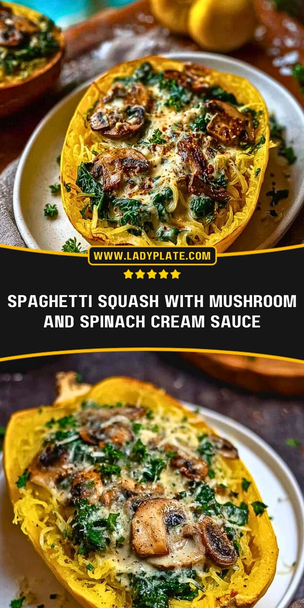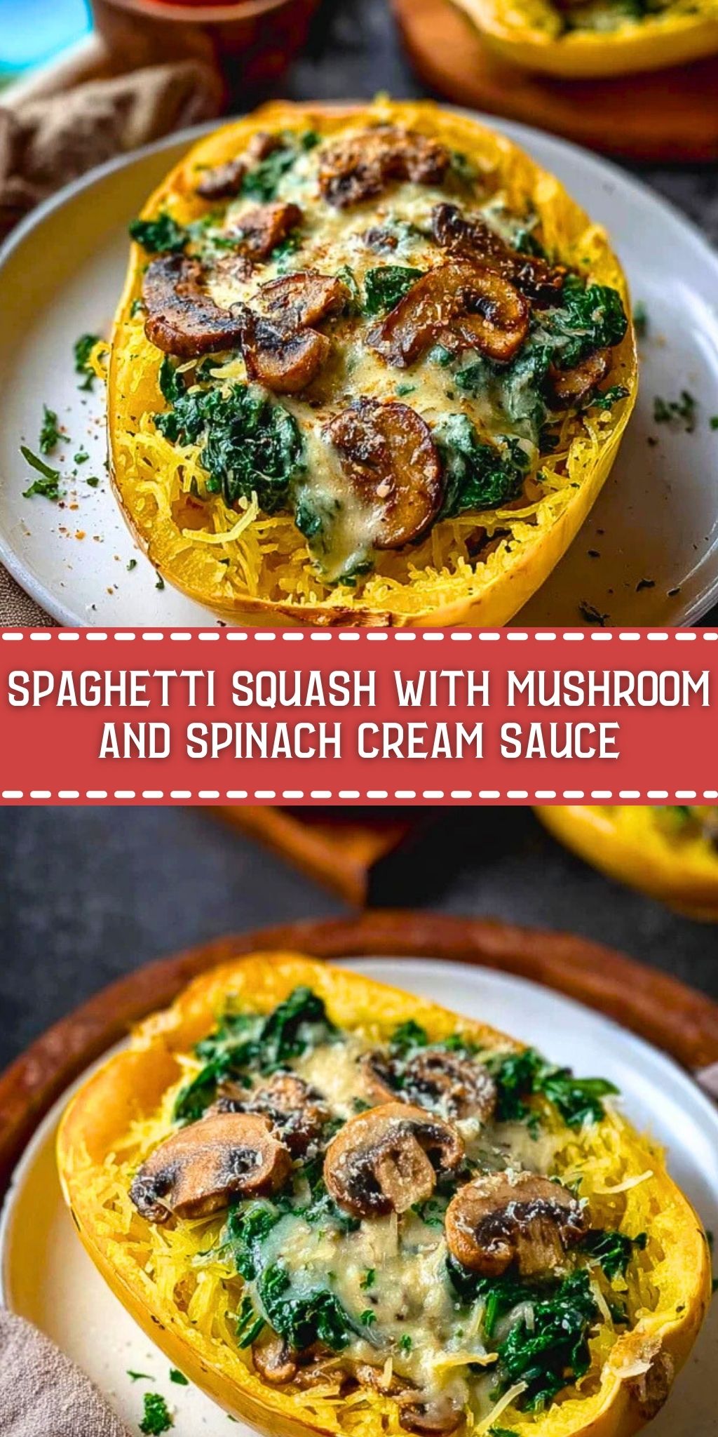 Spaghetti Squash with Mushroom and Spinach Cream Sauce