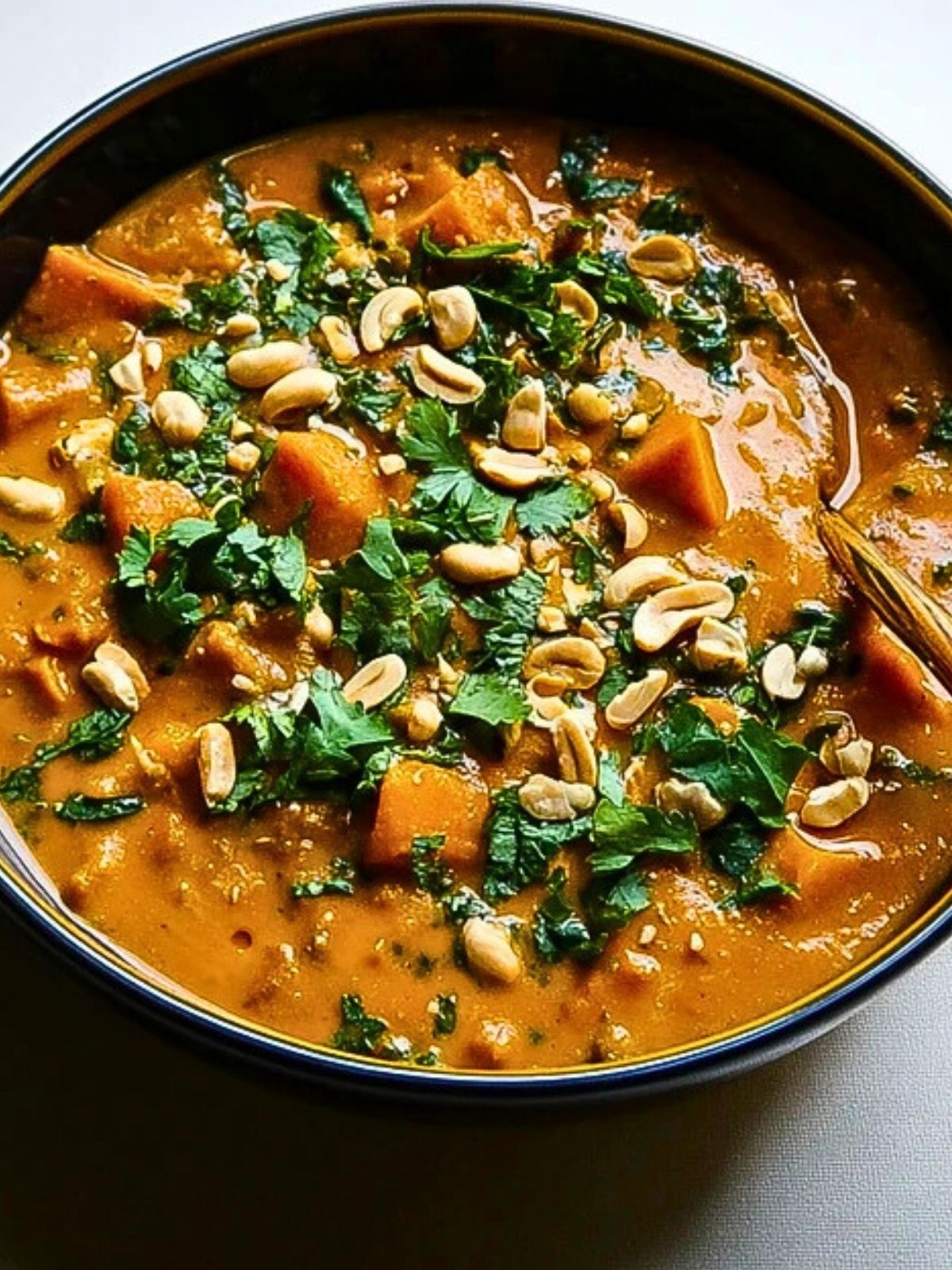 A bold, comforting West African dish, African Peanut Soup blends creamy peanut butter, hearty sweet potatoes, aromatic spices, and leafy greens into a warm, nourishing bowl. This one-pot wonder is perfect for cozy dinners and makes excellent leftovers.