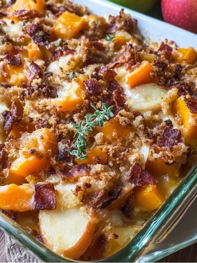 A warm and comforting casserole that brings together tender roasted butternut squash, tart-sweet apples, and smoky bacon, all topped with a buttery breadcrumb crunch. It’s perfect for holidays or cozy weeknight dinners.