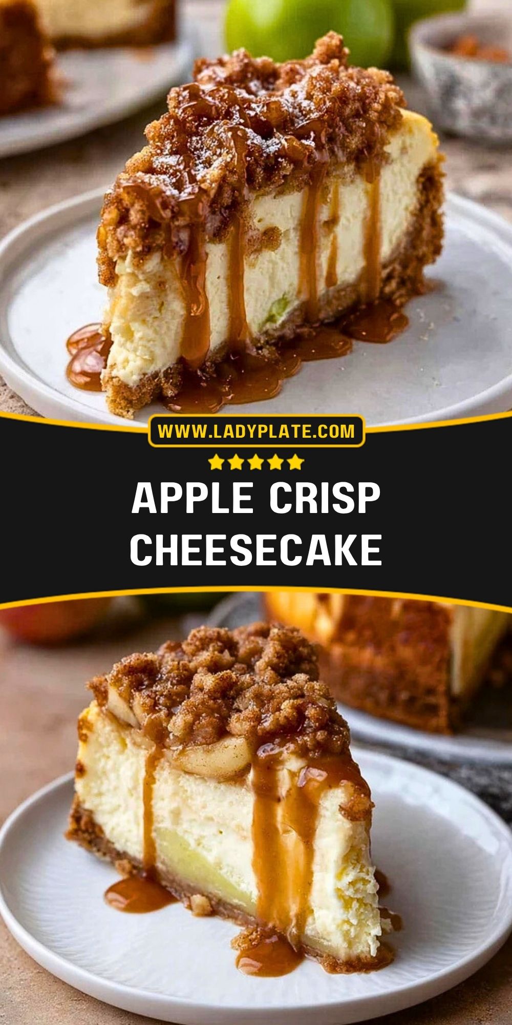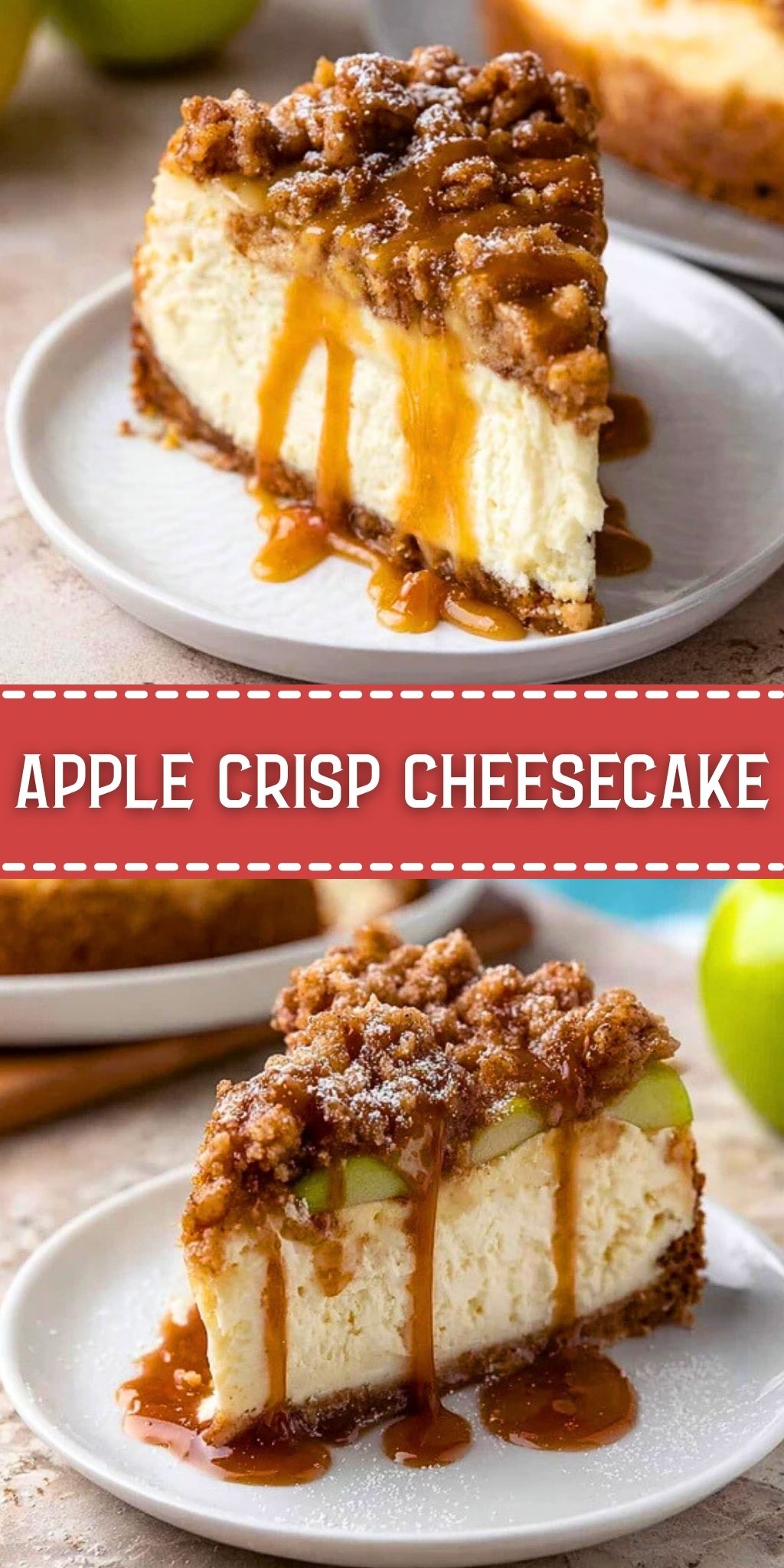 This Apple Crisp Cheesecake is a dreamy dessert hybrid with a crunchy graham crust, creamy cheesecake layer, spiced apple filling, and golden oat streusel topping. Finished with a caramel drizzle, it’s a cozy, decadent treat perfect for holidays or fall gatherings.