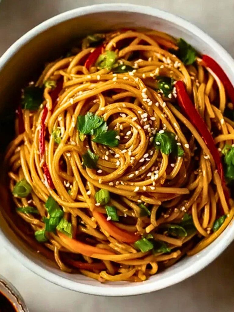 What sets this noodle dish apart is its perfect balance of textures and flavors. The noodles soak up a savory-sweet sauce, while sesame oil and fresh herbs elevate every bite. Whether you’re new to Asian-inspired cooking or a seasoned noodle lover, this dish promises to become a favorite in your weekly meal rotation.