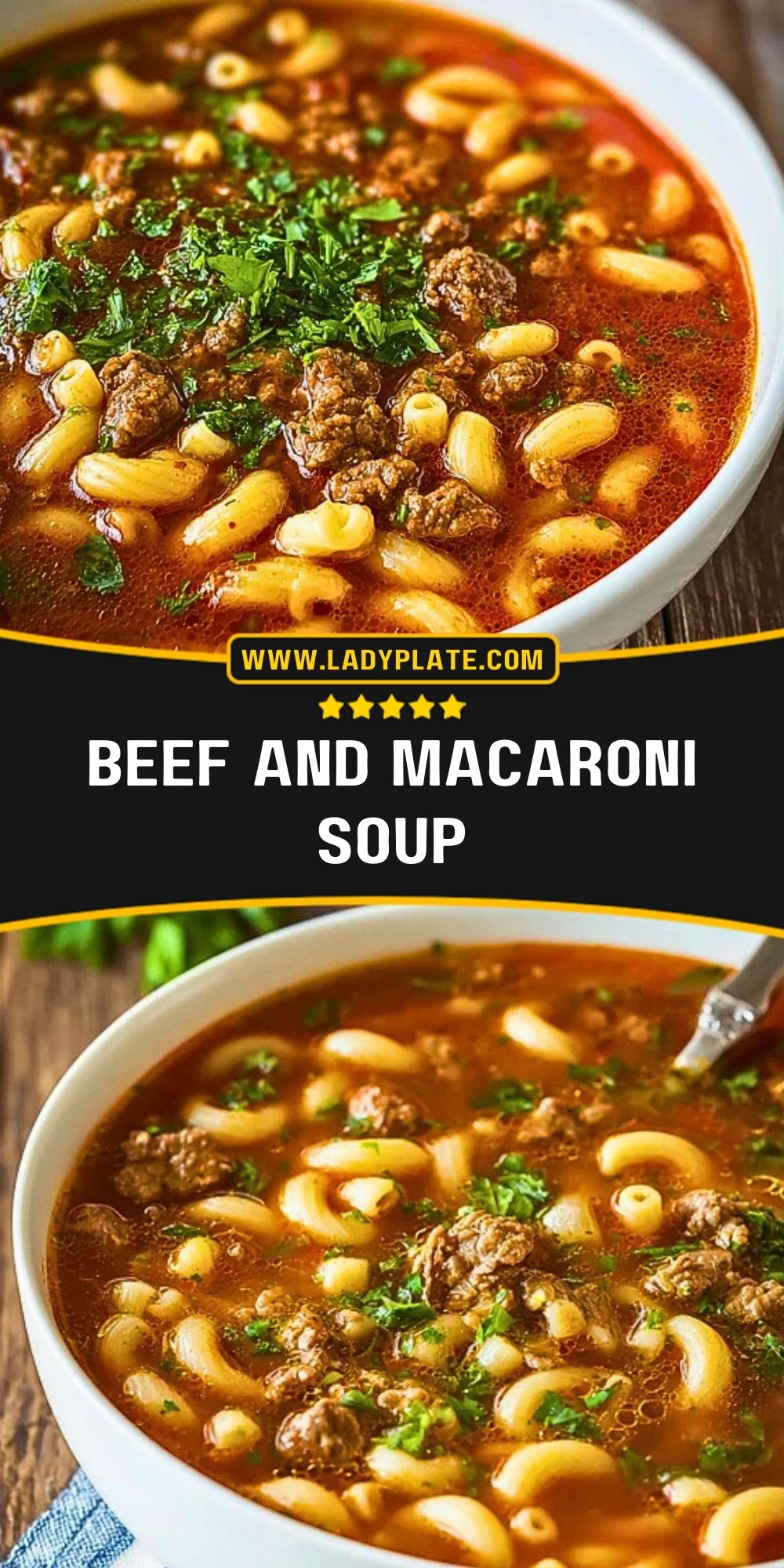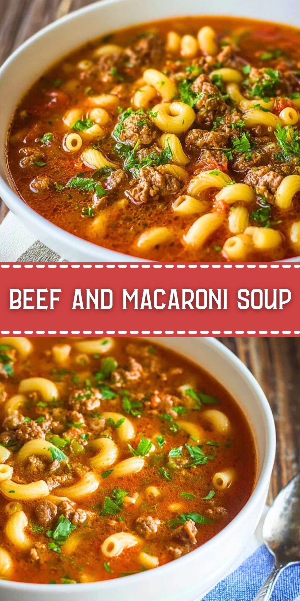 Serve this Beef and Macaroni Soup piping hot with a sprinkle of fresh parsley and, if you like, a little grated Parmesan on top. Pair it with crusty bread or a simple green salad for a complete meal.
