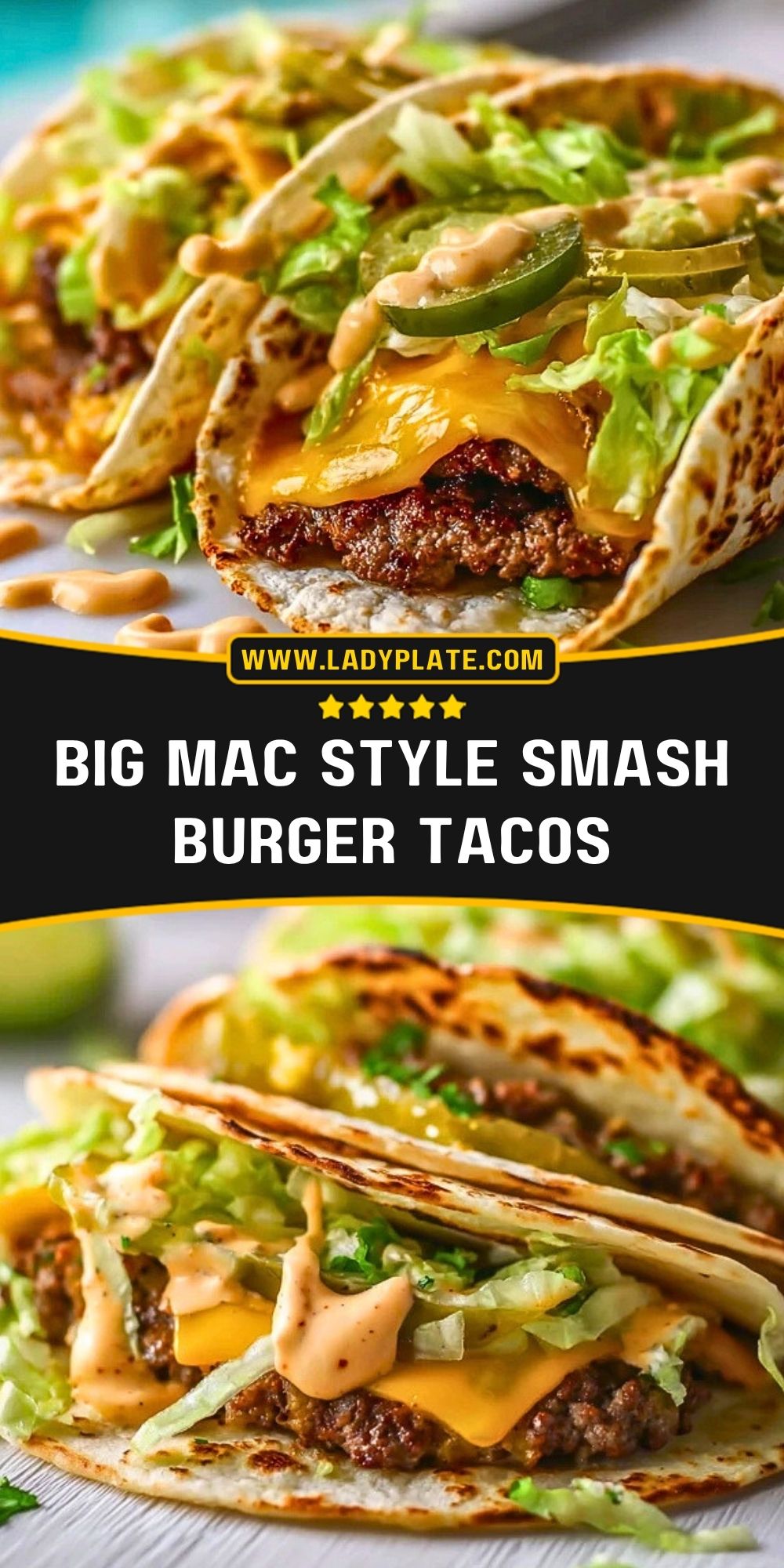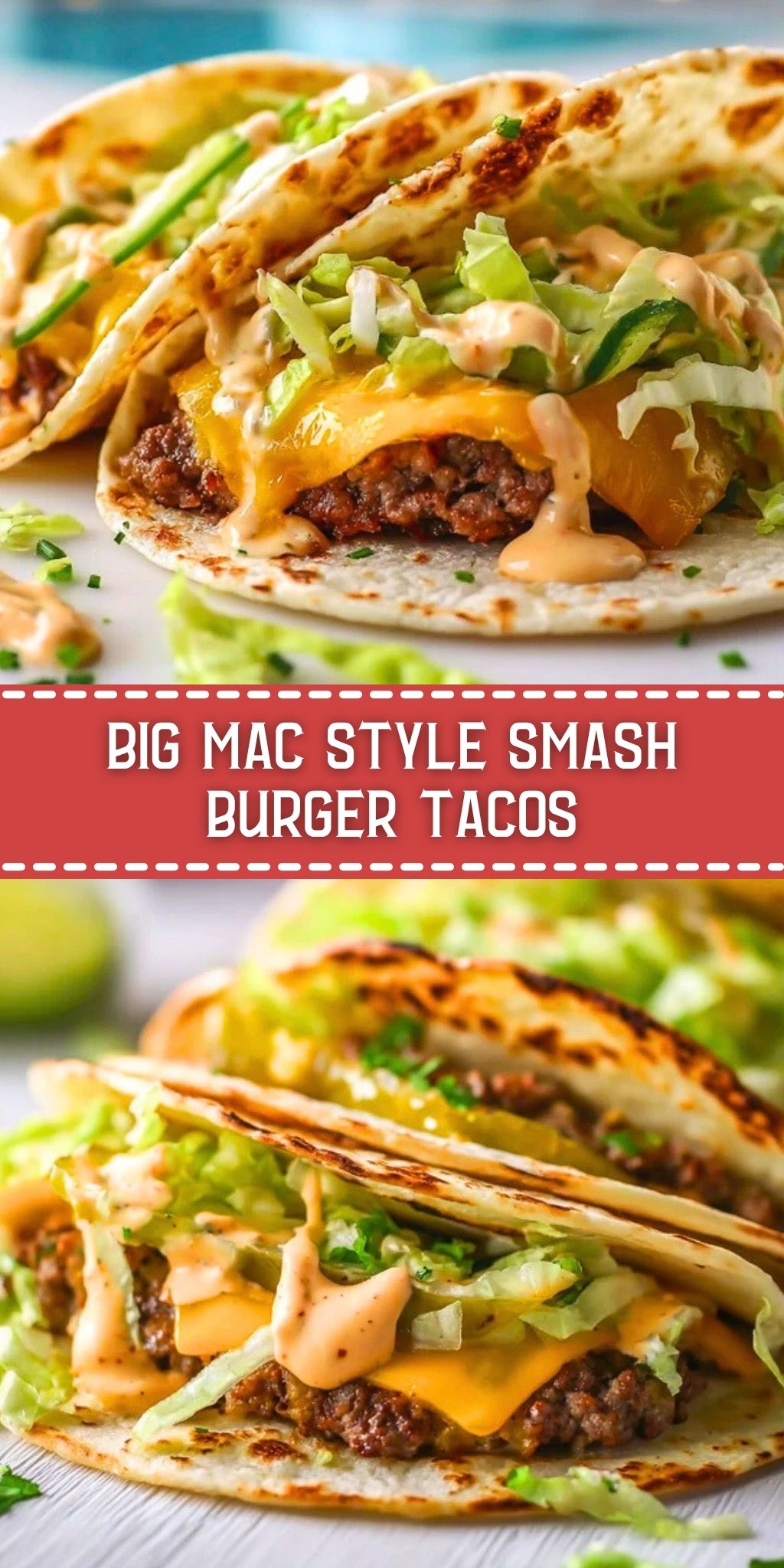 Big Mac Style Smash Burger Tacos bring together two fast food icons into one crispy, cheesy, handheld dish. Featuring juicy smashed beef patties seared directly onto tortillas, topped with melty American cheese, shredded lettuce, tangy pickles, diced onions, and a signature creamy sauce—this is your ultimate fusion dinner. Fast, fun, and perfect for weeknights or gatherings.