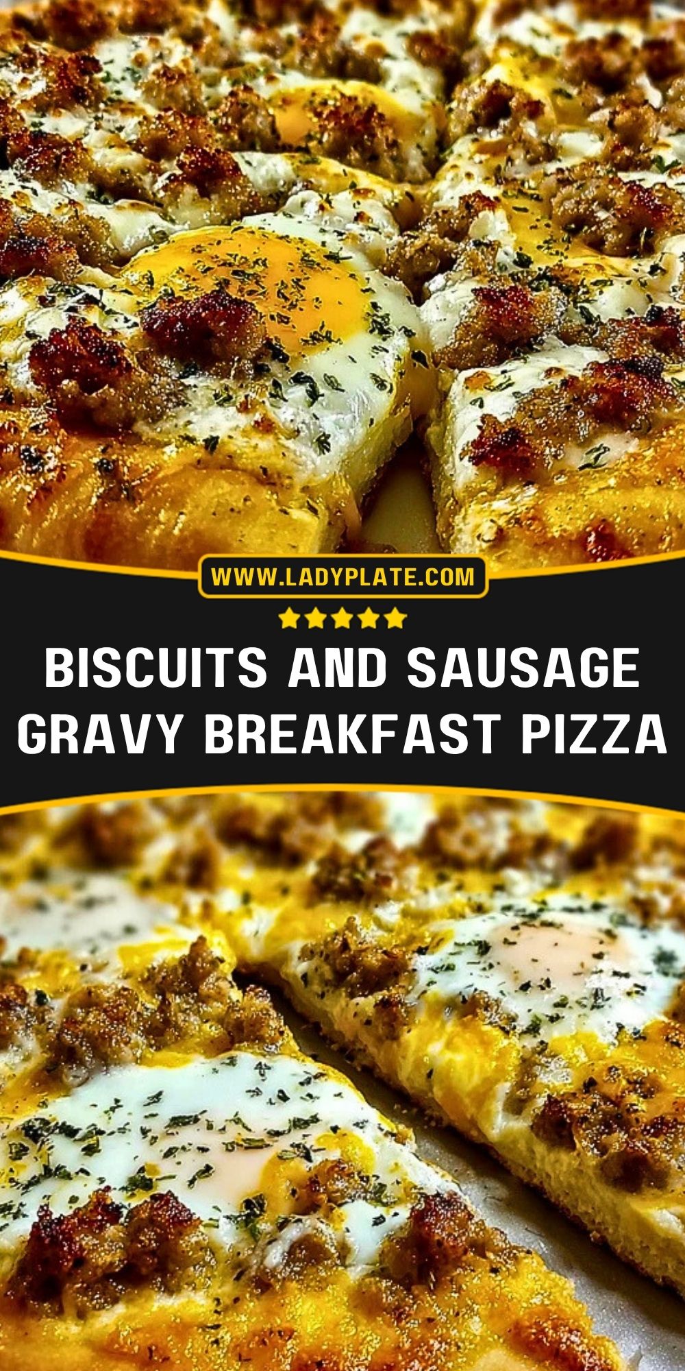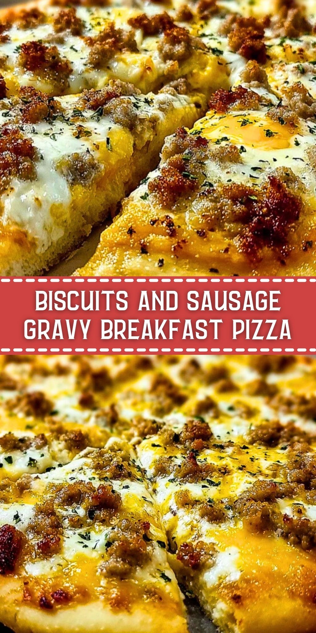 Flaky biscuit crust, creamy sausage gravy, gooey cheddar cheese, and optional runny eggs—all baked into one satisfying breakfast pizza. Perfect for brunch, weekend feasts, or a hearty breakfast-for-dinner.