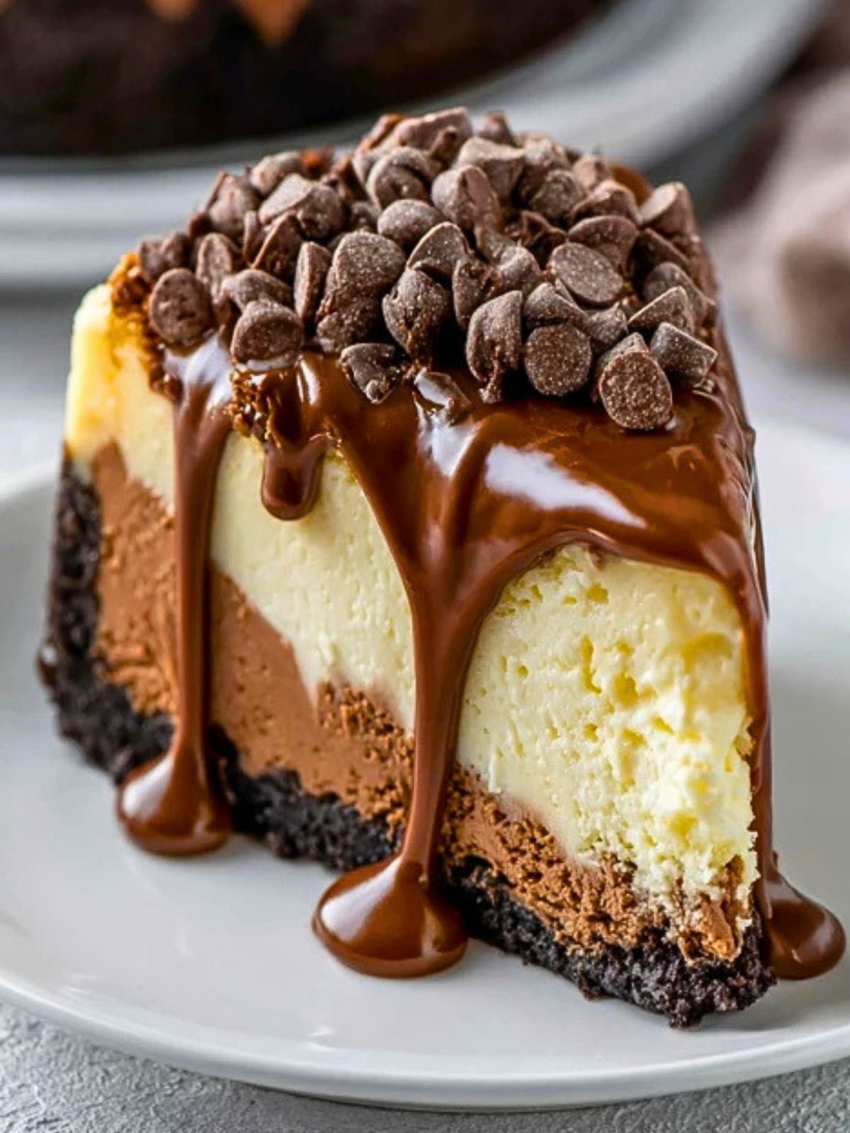 Craving a show-stopping dessert that blends nostalgic comfort with rich, chocolate decadence? Meet the Boston Chocolate Cream Pie Cheesecake, a layered masterpiece that brings together a fudgy Oreo crust, creamy chocolate and vanilla cheesecake layers, and a luscious ganache drip topped with a heap of chocolate chips. It’s everything you love about a classic Boston cream pie, taken to new heights in cheesecake form.