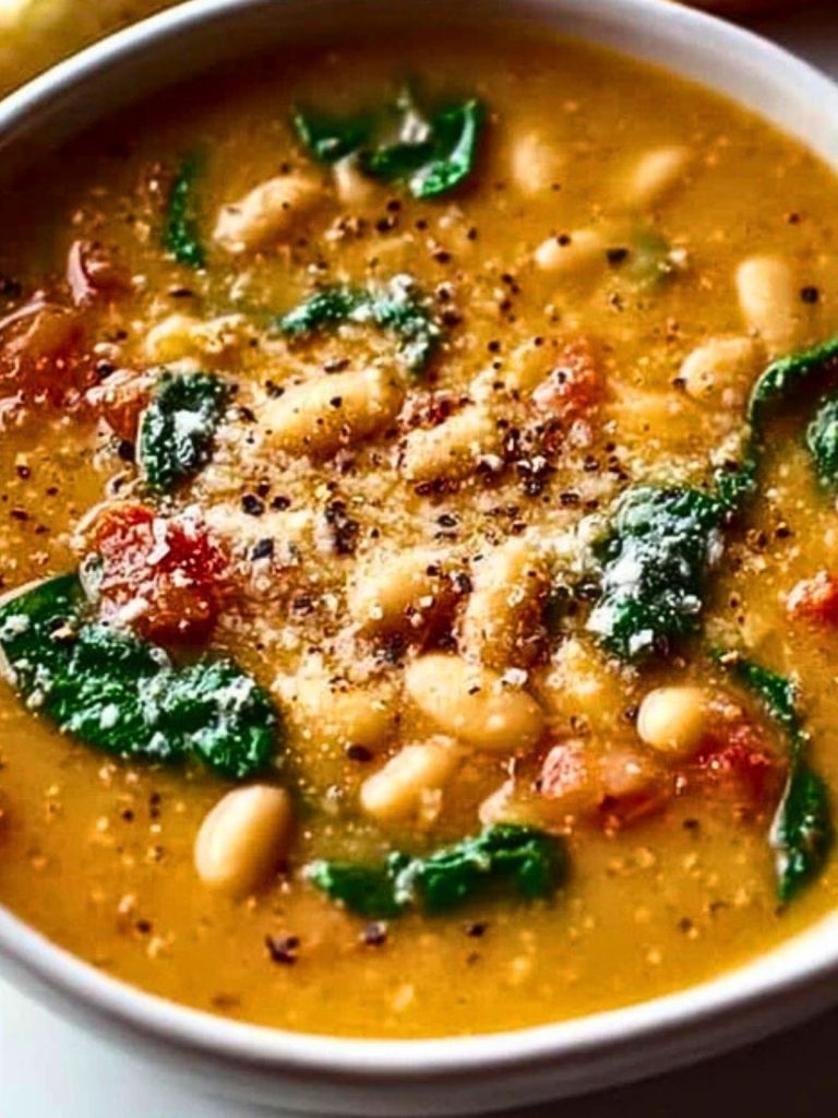 A hearty, plant-based soup featuring creamy cannellini beans, fresh spinach, and a savory broth. Naturally vegan and gluten-free, perfect for meal prep or a cozy evening in.