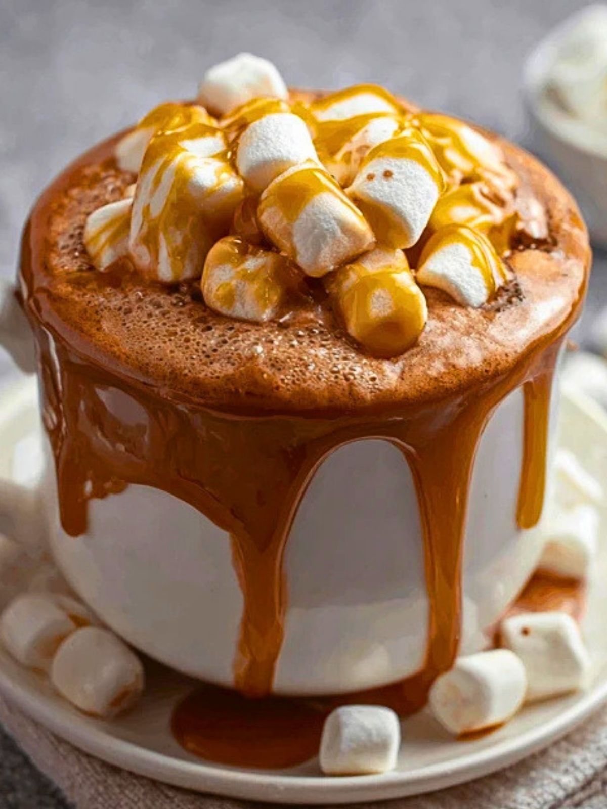 Caramel Marshmallow Hot Cocoa is best served immediately while the marshmallows are soft and the caramel is still glossy on top. For a cozy presentation, serve it in oversized mugs and pair it with butter cookies, shortbread, or a simple slice of loaf cake. If you are making it for guests, keep the cocoa warm over very low heat and let everyone add their own whipped cream, marshmallows, and caramel drizzle.