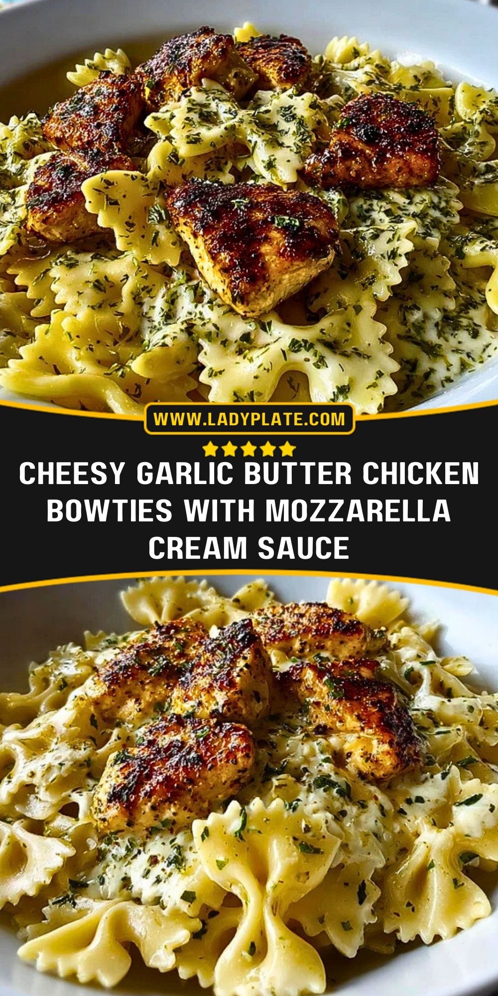 Cheesy Garlic Butter Chicken Bowties with Mozzarella Cream Sauce