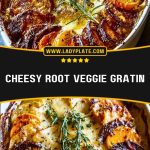 A golden, bubbling casserole of layered root vegetables bathed in a creamy garlic cheese sauce. This Cheesy Root Veggie Gratin is comforting, flavorful, and perfect as a main or side dish for any meal or special gathering.