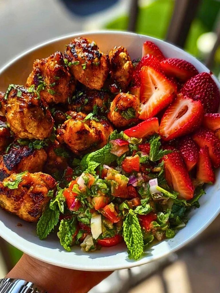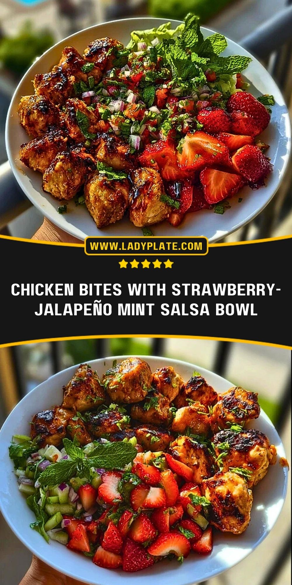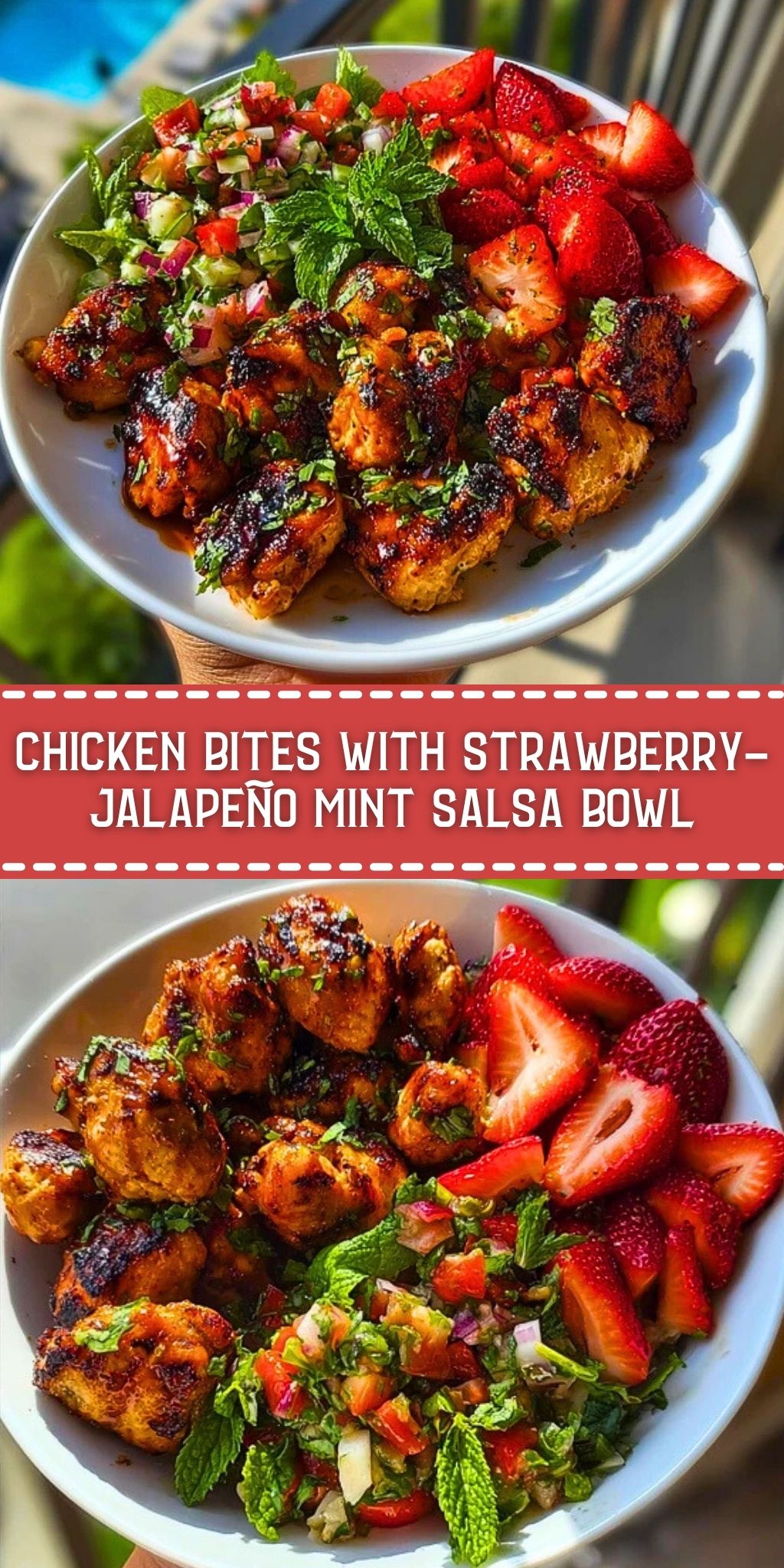 Craving something that hits every taste note—savory, spicy, sweet, and fresh? This Chicken Bites with Strawberry-Jalapeño Mint Salsa Bowl is the summer bowl you didn’t know you needed. Think juicy grilled chicken bites coated in bold spices, paired with a zingy strawberry-jalapeño salsa bursting with mint and lime. It’s a vibrant mix that balances protein-packed bites with cooling freshness and natural sweetness.