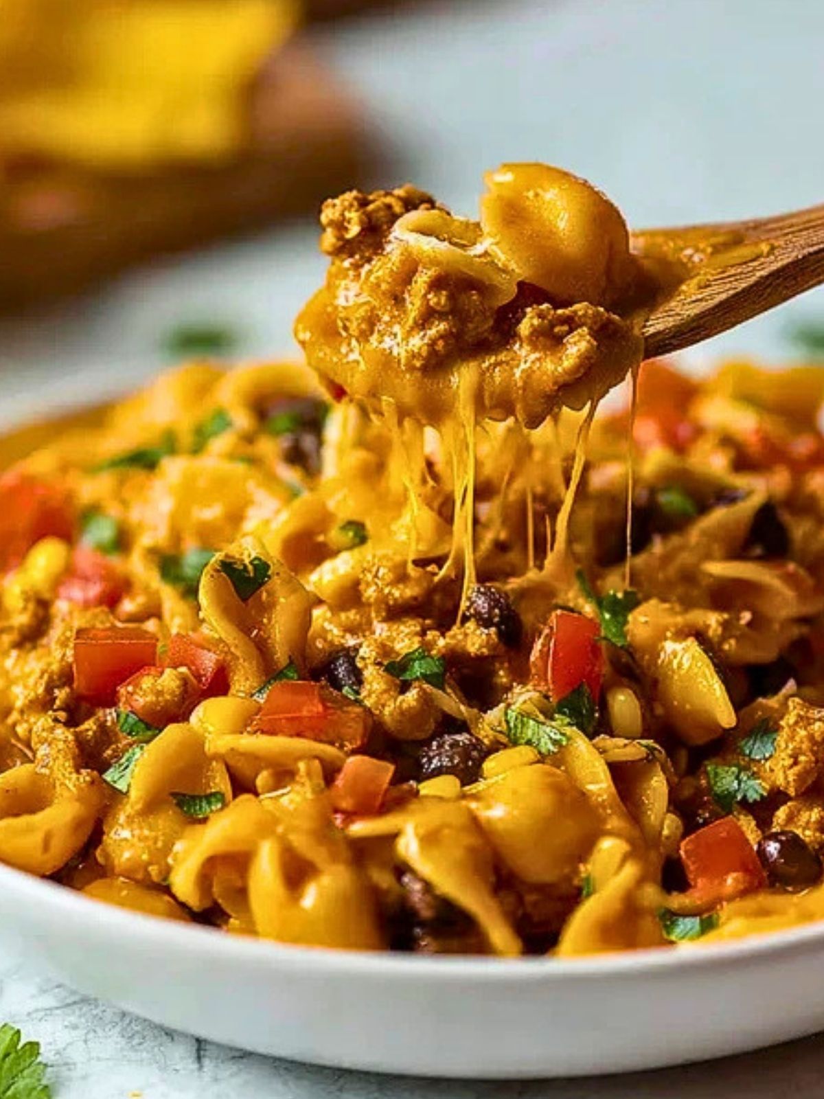 Black beans make the dish more filling and add a soft, earthy contrast to the pasta. Corn adds a subtle sweetness that balances the spices. Cheddar cheese or a Mexican cheese blend melts into the sauce and gives you that stretchy, comforting finish.