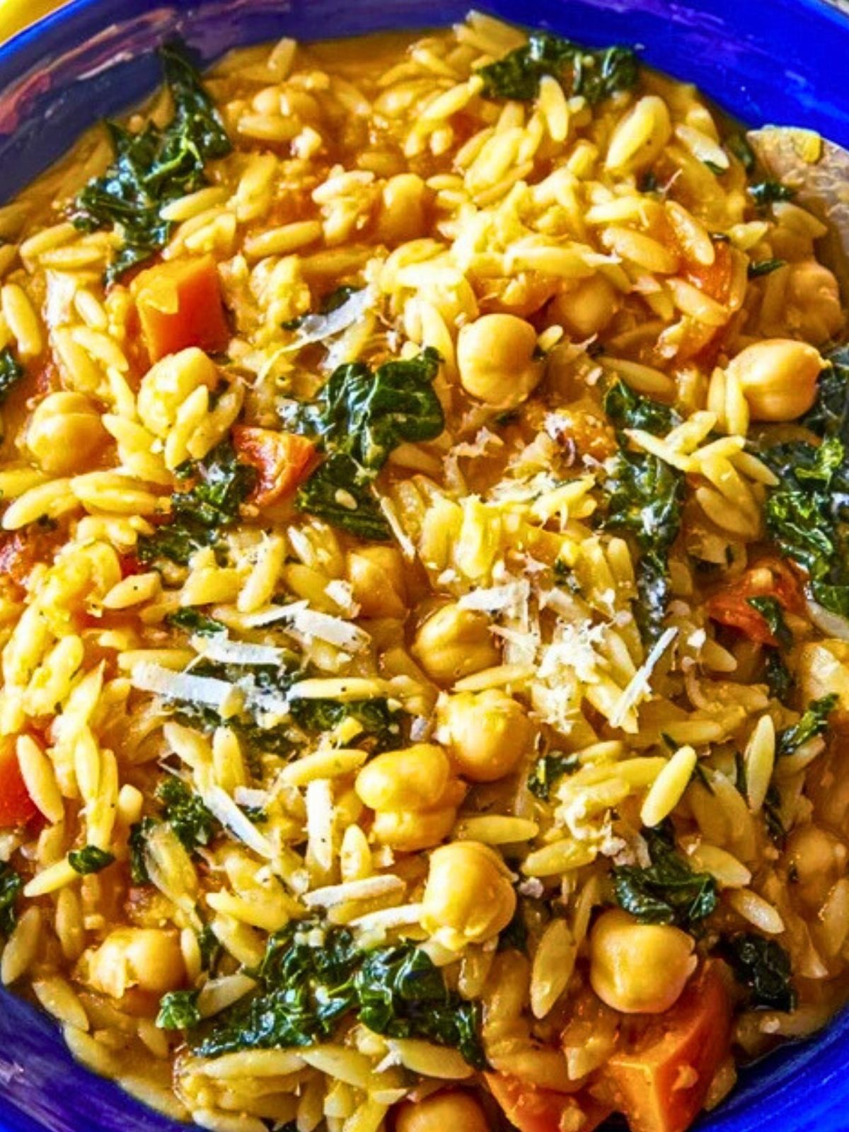 Chickpea Orzo is best served warm, right after cooking, when the orzo is creamy, and the vegetables are still vibrant. Ladle it into shallow bowls and finish with fresh Parmesan or a squeeze of lemon for brightness.