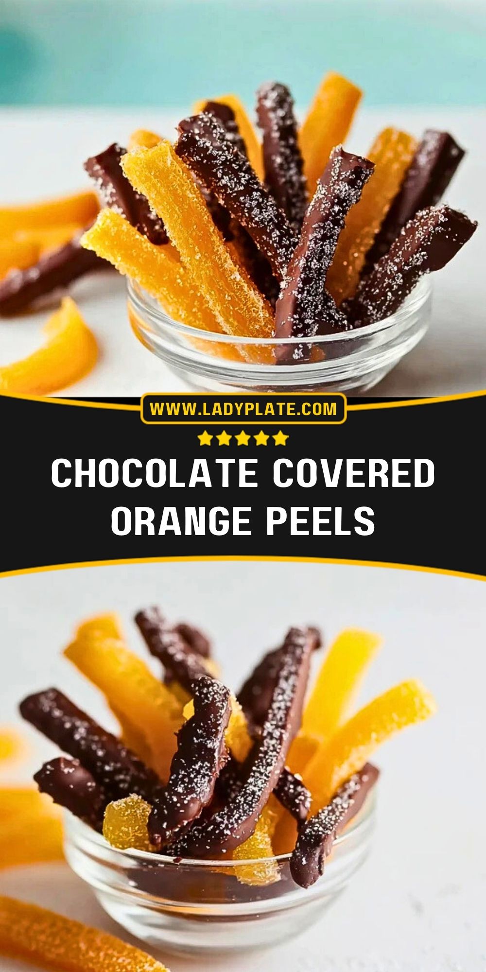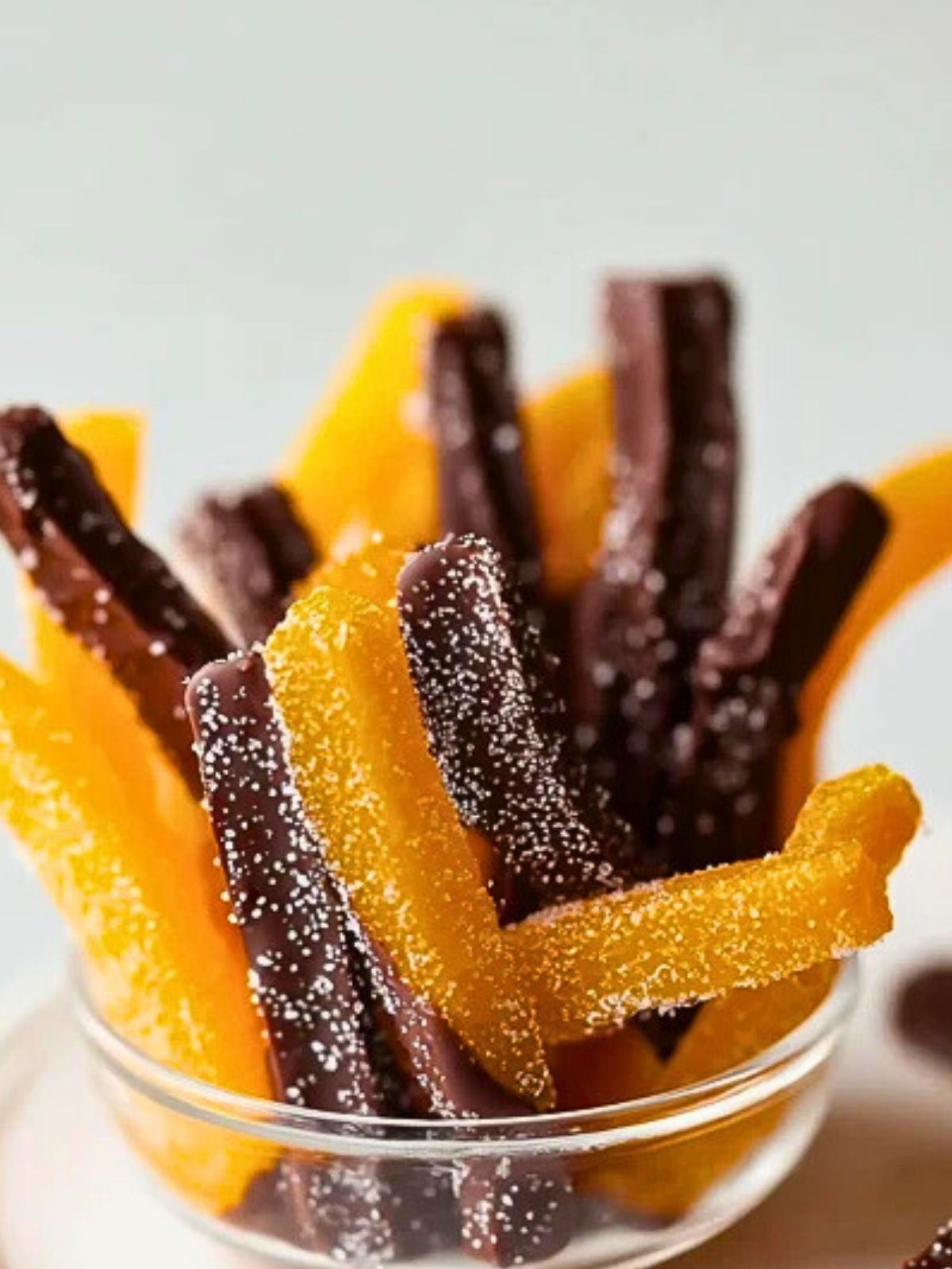 Chocolate Covered Orange Peels are best served as a refined after-dinner treat or an elegant addition to a dessert board. Their vibrant color and glossy finish also make them perfect for gifting—simply pack them into small cellophane bags or decorative tins.