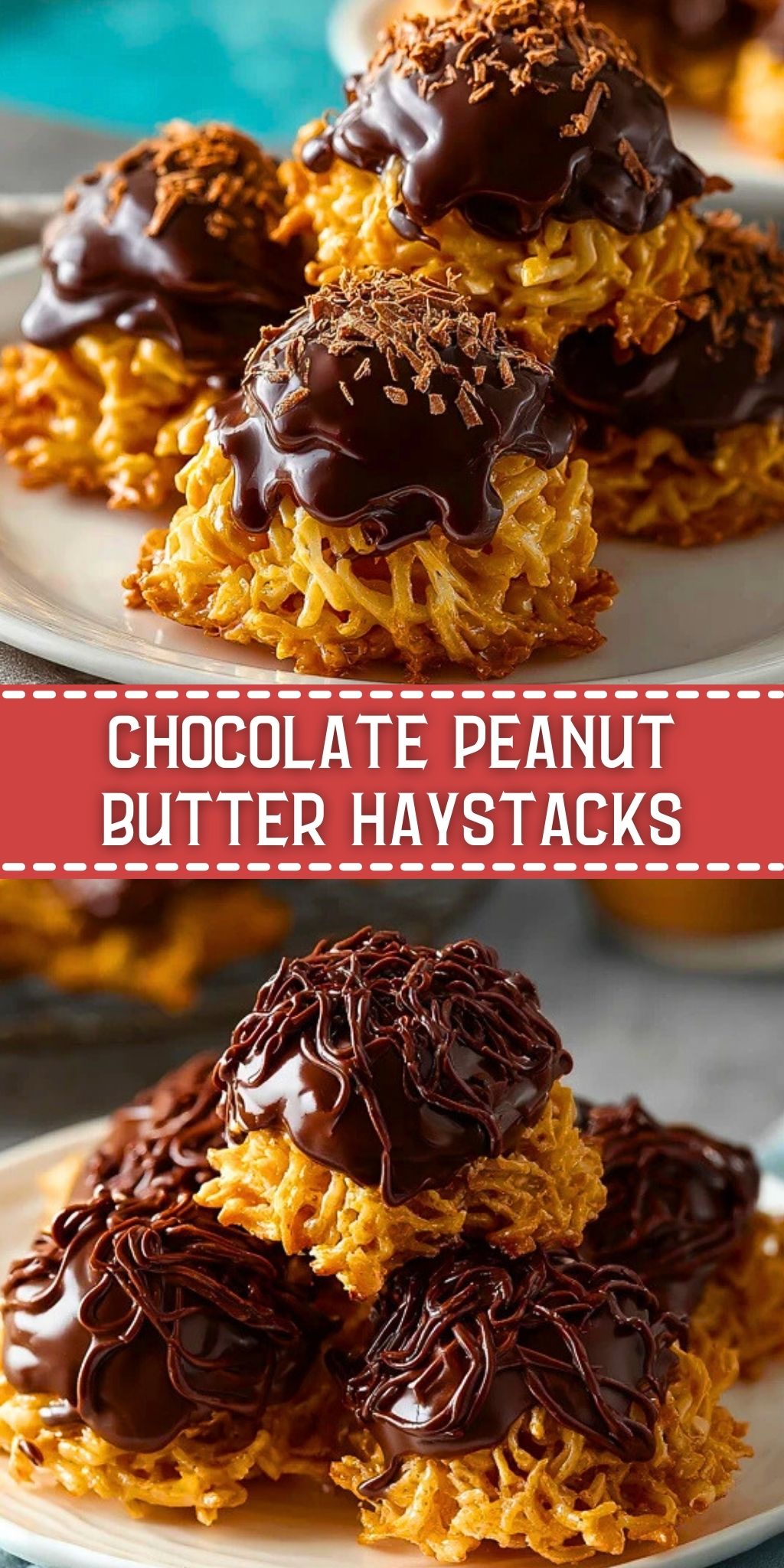 Looking for a quick dessert that doesn’t require an oven? These Chocolate Peanut Butter Haystacks are your new best friend! This no-bake treat combines crispy chow mein noodles with creamy peanut butter and melted chocolate for a sweet snack, holiday treat, or easy party dessert. Whether you’re craving chocolate food ideas or need easy recipes for entertaining, these haystacks are a must-try in your collection of dessert and snack ideas.