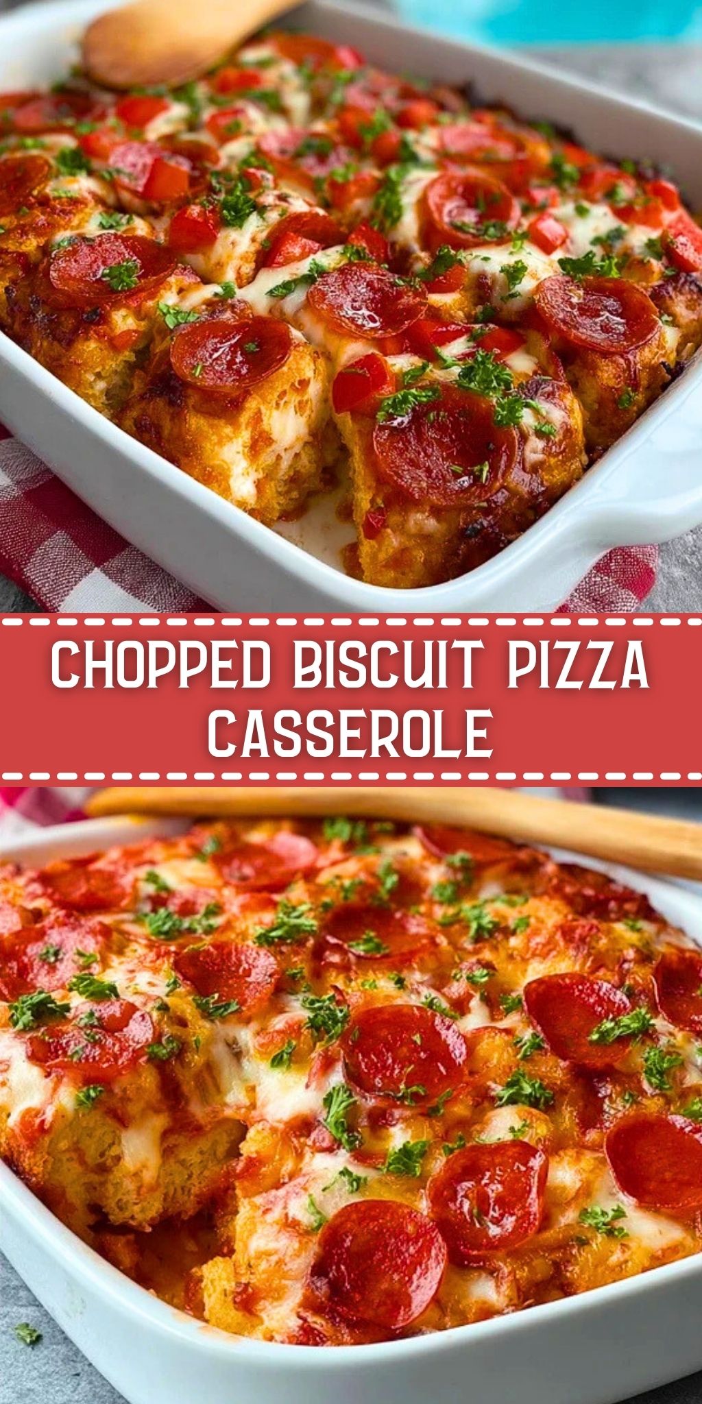 Ever found yourself craving pizza but wanting something even cozier and more satisfying? Chopped Biscuit Pizza Casserole is your answer. This recipe is all about comforting layers: buttery biscuit dough, savory marinara, gooey cheese, and crisp pepperoni, all baked together into a bubbly, golden casserole. It has the bold flavor of pizza with the homey vibe of a weeknight casserole.