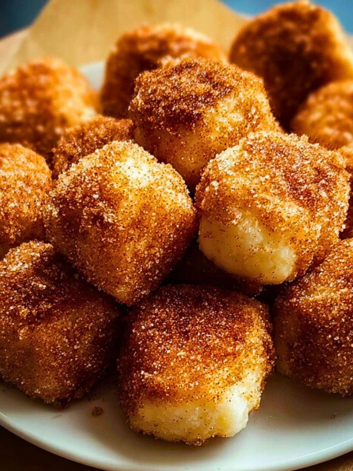 These bites are best served warm, fresh from the oven or air fryer. Their cinnamon coating and tender texture are at their peak within the first hour. Serve them stacked on a platter with a drizzle of honey or a side of cream cheese glaze for dipping if you’re feeling indulgent.