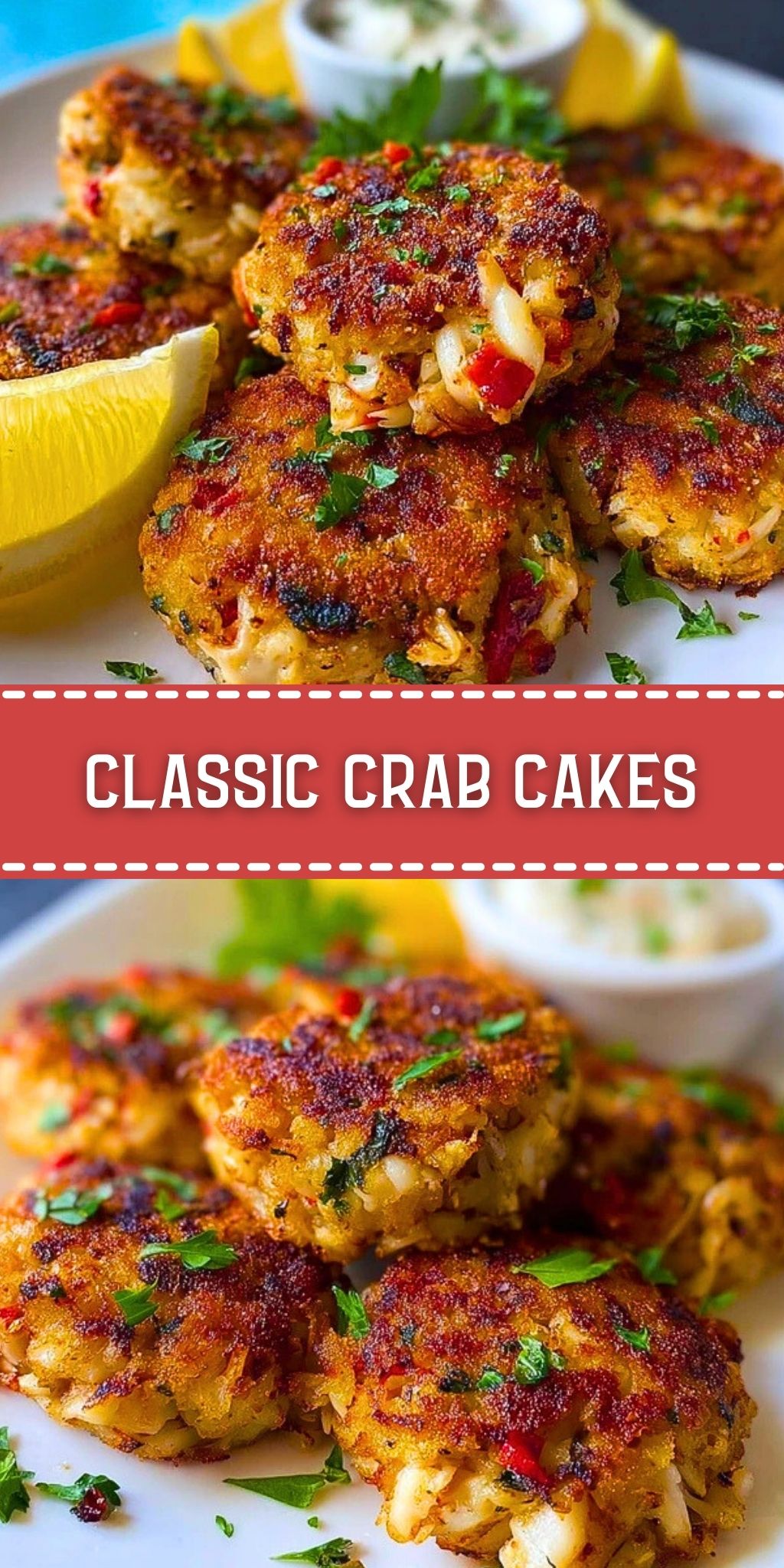 Golden brown on the outside, tender and flavorful inside—these Classic Crab Cakes are packed with sweet lump crab, lightly seasoned, and pan-fried to crispy perfection. Perfect as an appetizer or a seafood main course.