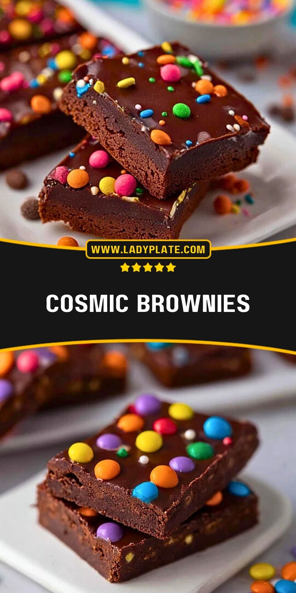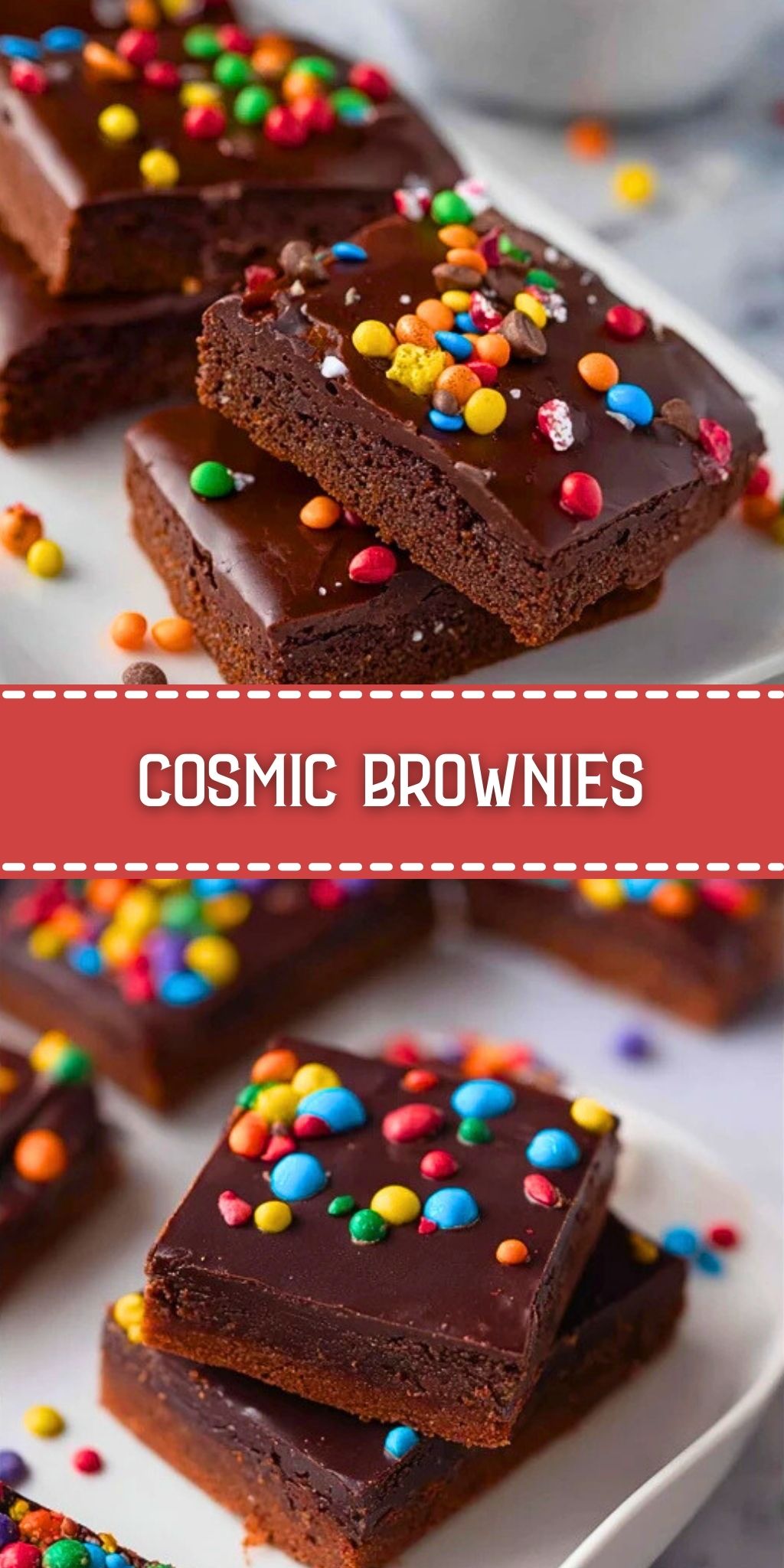 Craving that nostalgic, fudgy chocolate bite with a sprinkle of rainbow magic? Cosmic Brownies are the perfect homemade version of the iconic lunchbox treat that defined many childhoods. Dense, chewy, and topped with glossy chocolate ganache and colorful candy-coated chips, they’re a fun and satisfying dessert everyone will love.