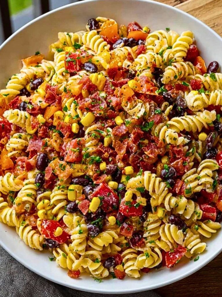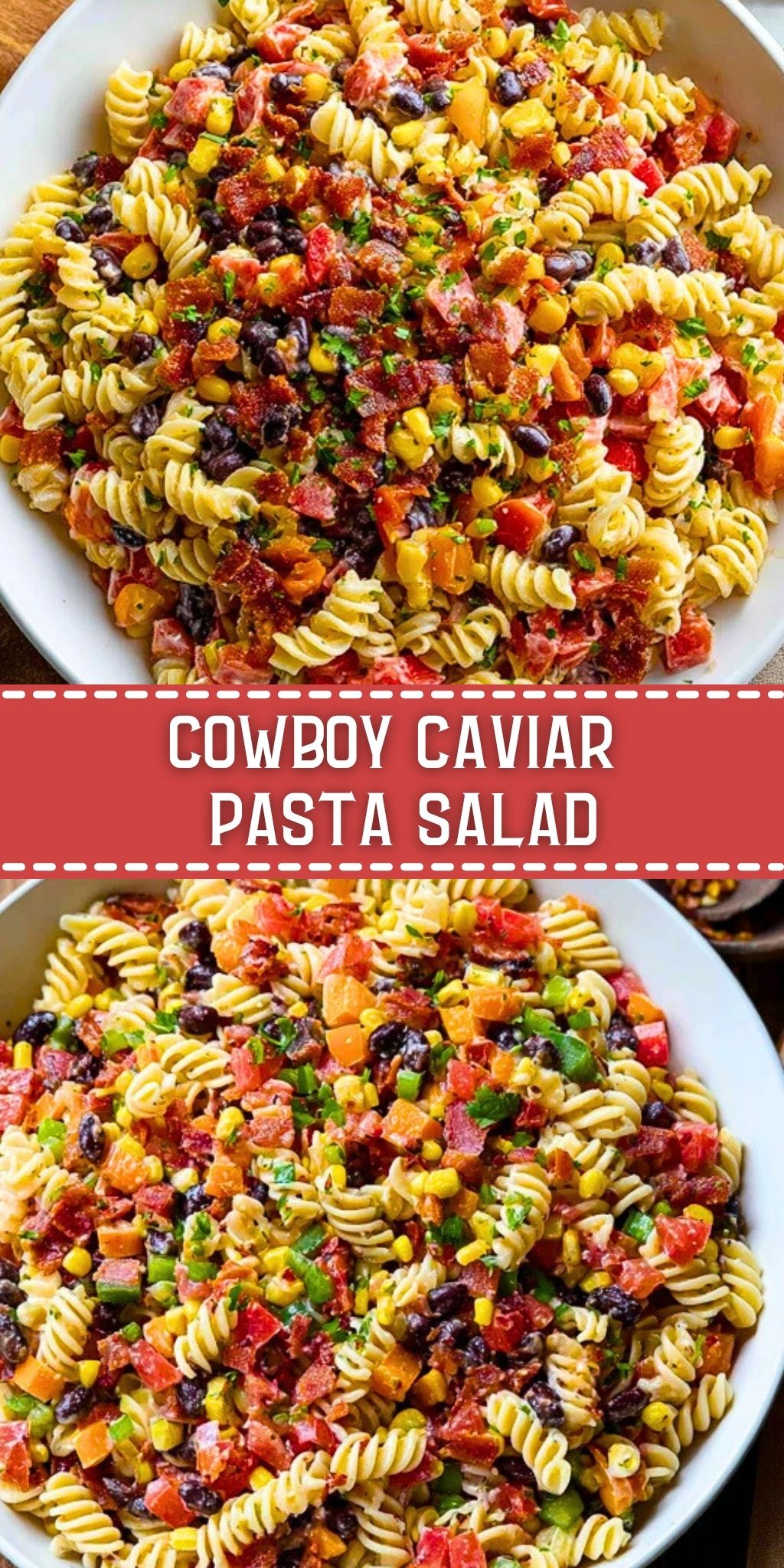 Cowboy Caviar Pasta Salad is a bold, colorful twist on the classic Southwestern dip—transformed into a hearty, satisfying salad. Packed with black beans, sweet corn, bell peppers, and crispy bacon, it’s all brought together with creamy dressing and tossed with rotini pasta for a delightful crunch in every bite. Ideal for BBQs, meal prep, or potluck parties, this dish is as easy as it is delicious.