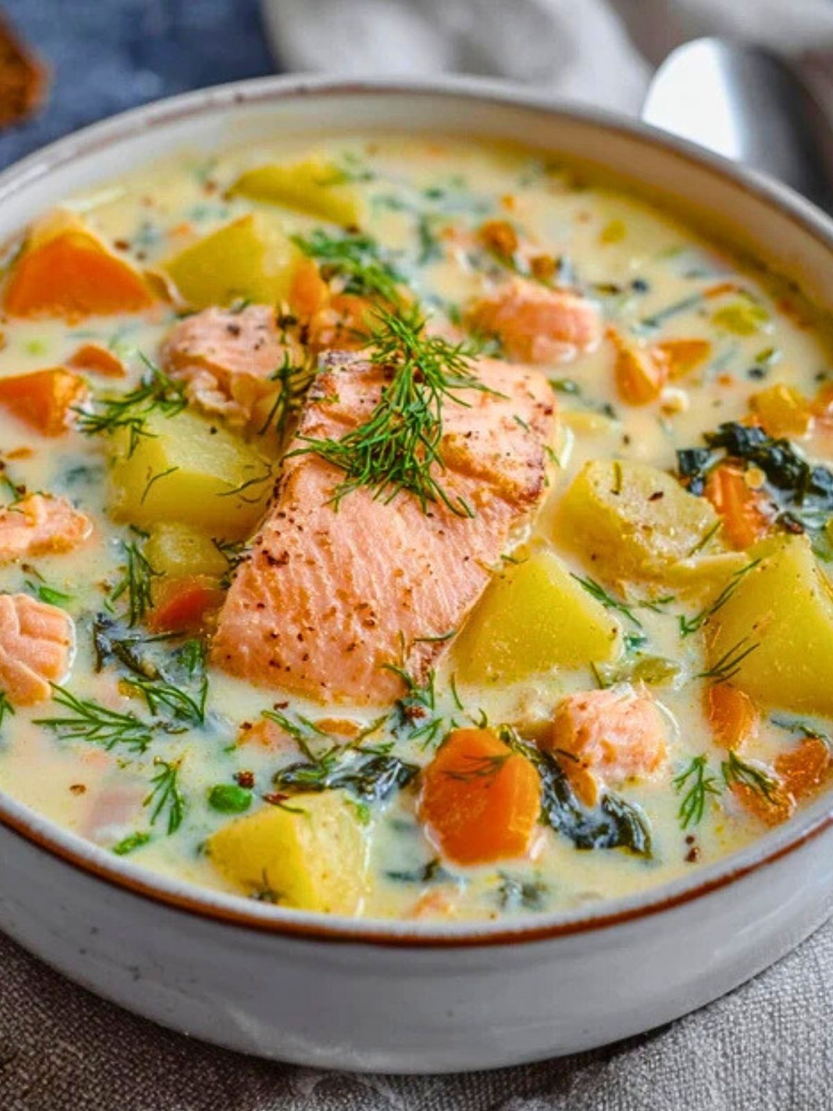 This Cozy Salmon Chowder is a creamy, hearty soup filled with tender chunks of salmon, buttery potatoes, and colorful vegetables. Balanced with fresh dill and a hint of lemon, it’s a soul-warming dish that comes together in one pot. Perfect for chilly evenings or an elevated everyday dinner.