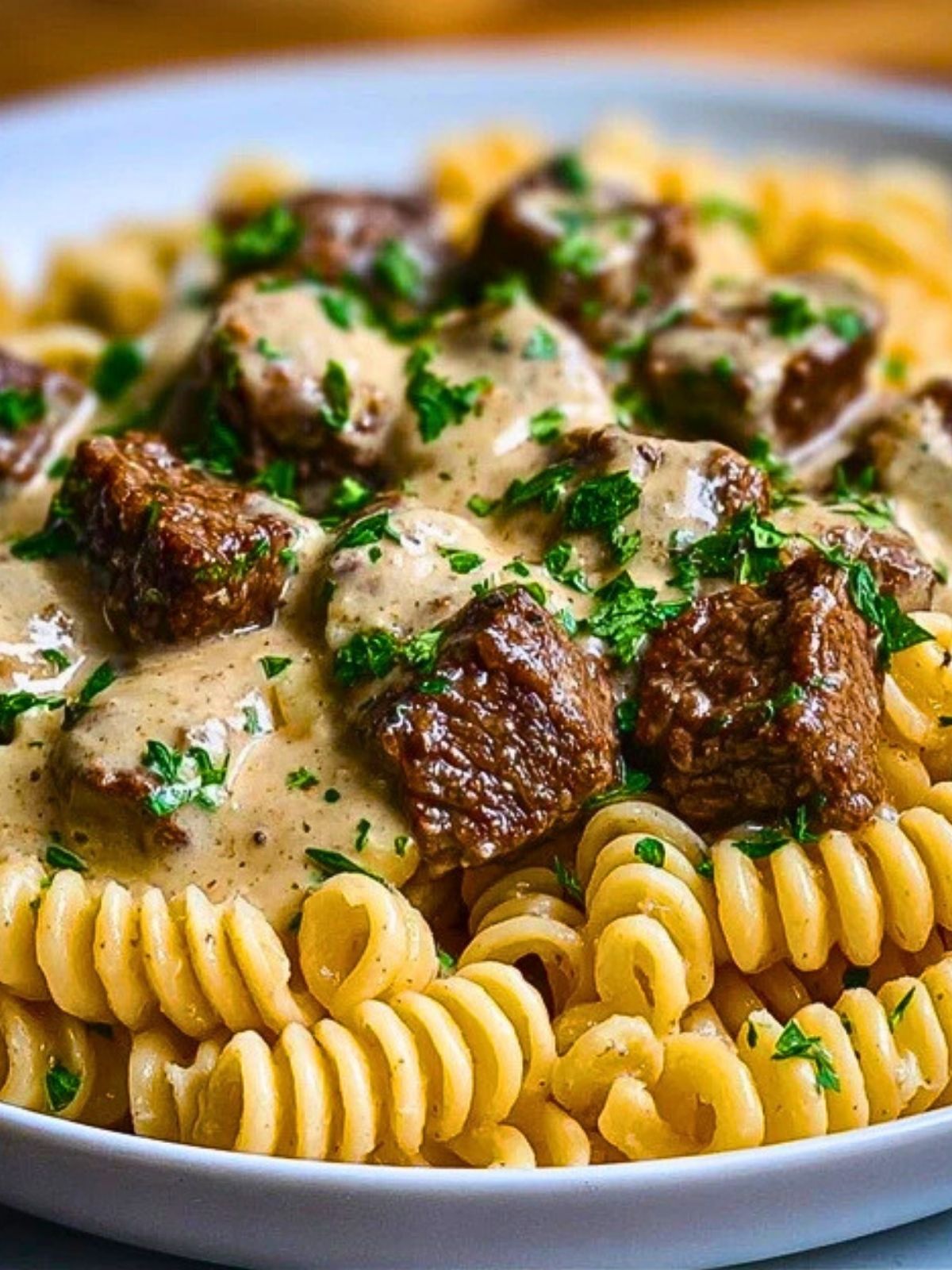 This pasta dish is perfect for weeknight dinners when you want something special, or a cozy weekend meal that feels like a hug in a bowl. It’s hearty, satisfying, and packed with flavor thanks to the browned butter, fresh garlic, heavy cream, and well-seasoned steak cubes that make it an unforgettable one-pan meal.