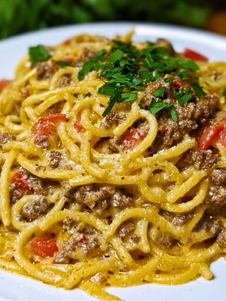 This one-pot creamy Italian spaghetti blends seasoned ground beef, pasta, and melty cheese in a rich, velvety sauce. A quick comfort meal with minimal cleanup and maximum flavor.