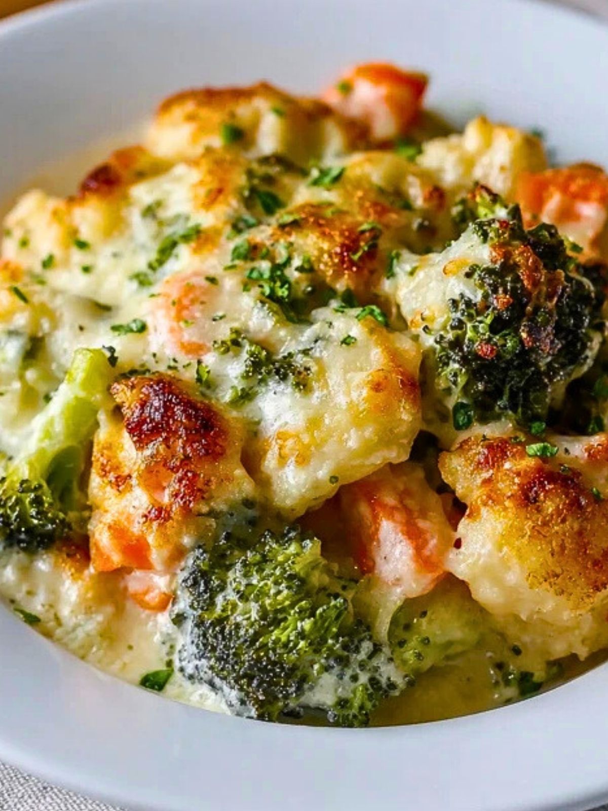 Looking for a hearty dish to cozy up with this season? This Creamy Winter Vegetable Casserole is packed with tender broccoli, cauliflower, and carrots, all baked in a luscious cheddar-Parmesan cream sauce until golden and bubbling. It’s a perfect go-to for a quick dinner, healthy snack, or easy holiday side. A delicious comfort food that doubles as a vegetarian-friendly main dish — quick to prep, loaded with nutrients, and freezer-friendly too.