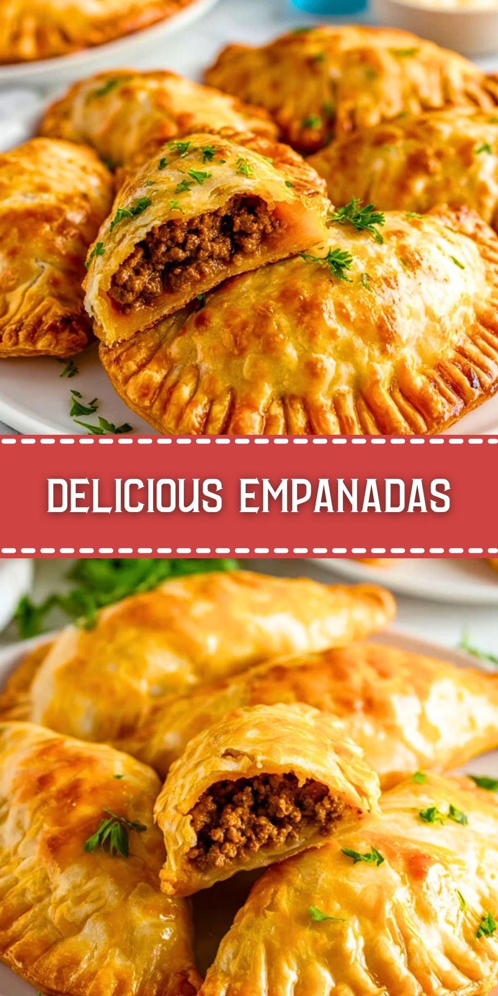 These Delicious Empanadas are baked golden pockets of seasoned ground beef wrapped in a flaky crust. Perfect for gatherings, lunchboxes, or make-ahead meals. The filling is rich and savory, while the crust delivers a satisfying crunch with every bite.