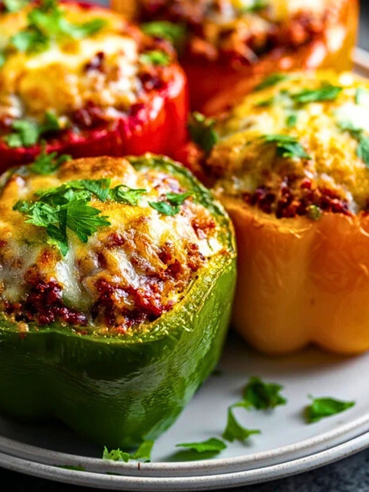 These stuffed peppers are wonderfully versatile when it comes to serving. You can plate them as a full dinner with a crisp side salad or keep it casual with crusty garlic bread. For lighter portions, slice them in half before serving.