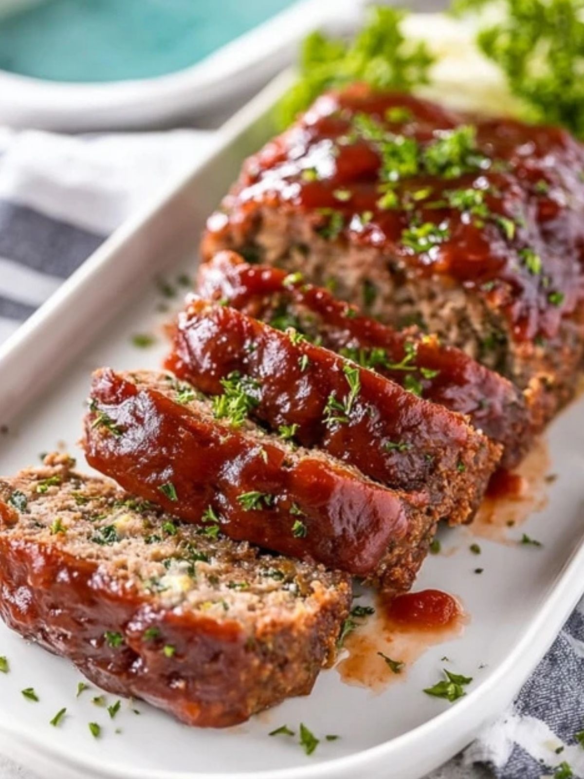 For serving, thick slices are best to preserve the meatloaf’s structure. Pair it with classic sides like mashed potatoes, buttered corn, or a crisp green salad for a well-rounded plate. If you’re making it for guests, sprinkle a bit of chopped parsley on top for a pop of color.