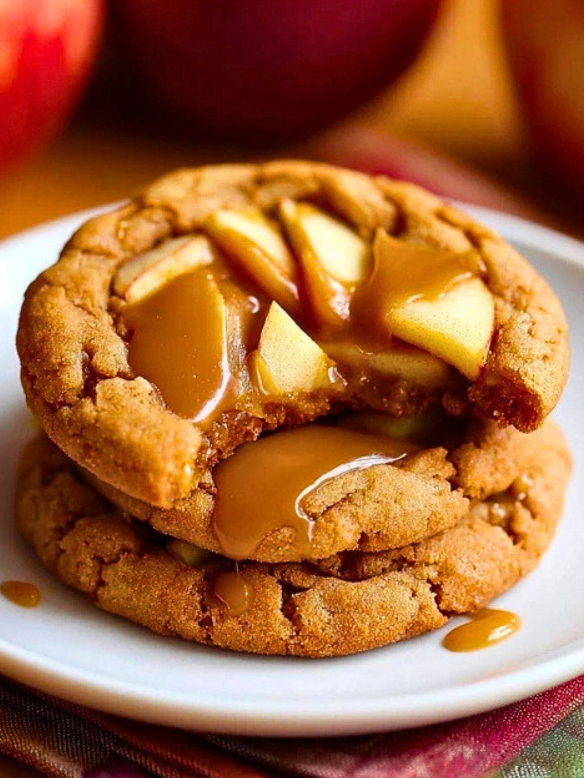 These cookies are best served slightly warm, when the caramel is gooey and the apples tender. They pair beautifully with a cup of cider or a scoop of vanilla ice cream.