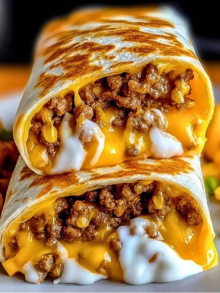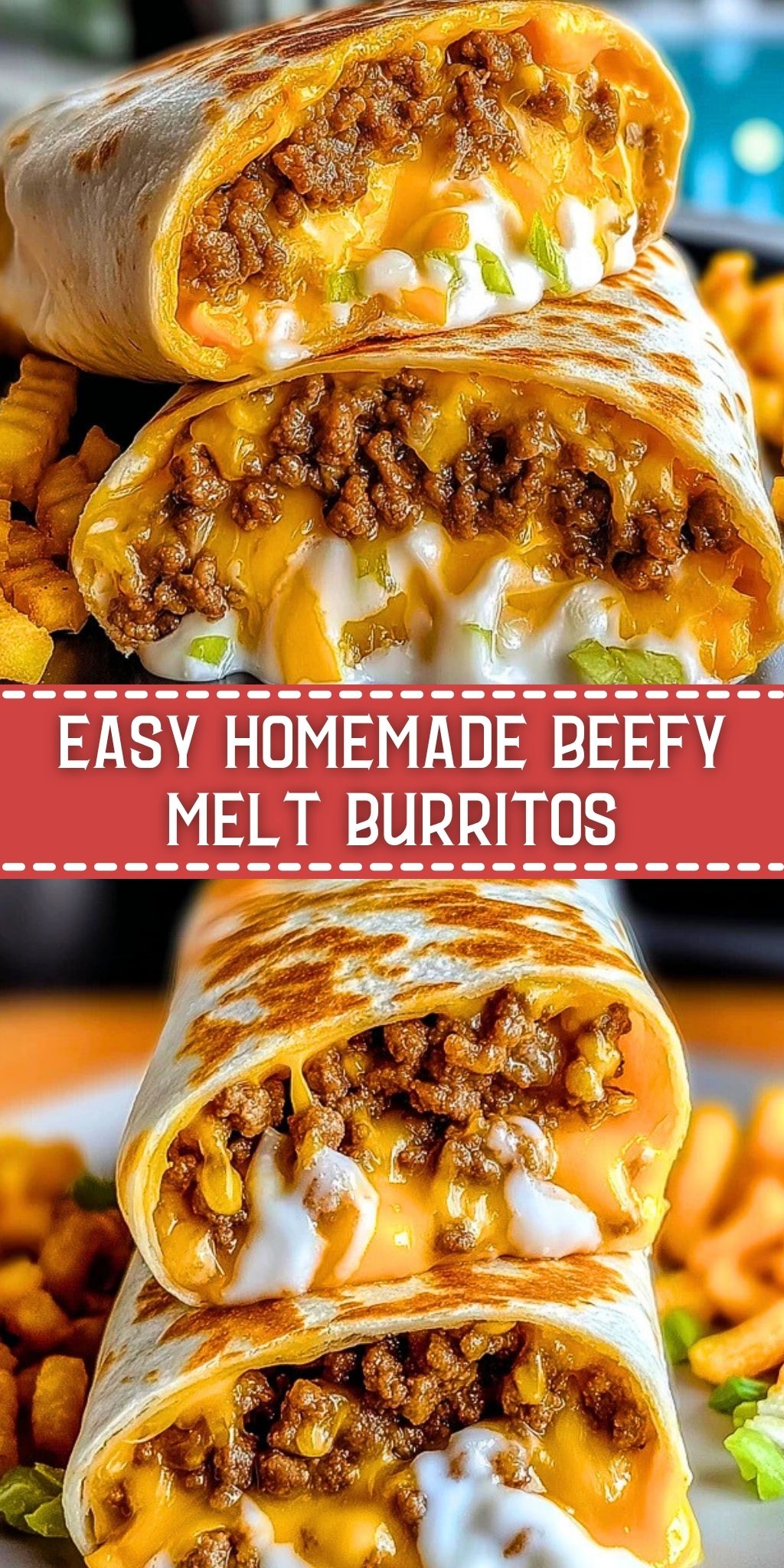 These Easy Homemade Beefy Melt Burritos are packed with seasoned beef, melted cheese, and creamy sour cream wrapped in a golden, toasty tortilla. Perfect for lunch, dinner, or meal prep, they’re better than any fast food version — and incredibly easy to make at home!