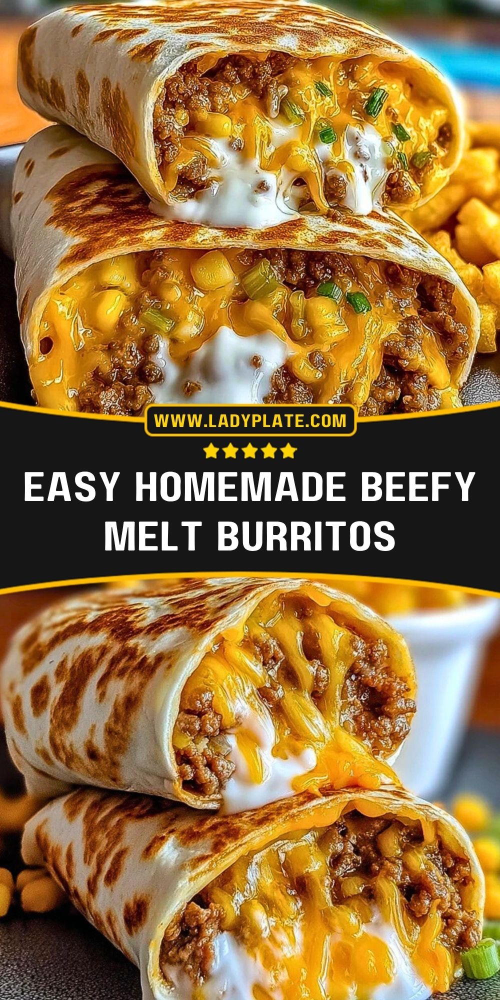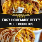 Craving something warm, cheesy, and incredibly satisfying? These Easy Homemade Beefy Melt Burritos are the answer to your comfort food dreams. Picture this: seasoned beef, gooey melted cheese, and a drizzle of sour cream, all wrapped in a golden toasted tortilla. Every bite delivers the perfect balance of richness, spice, and that irresistible handheld convenience.