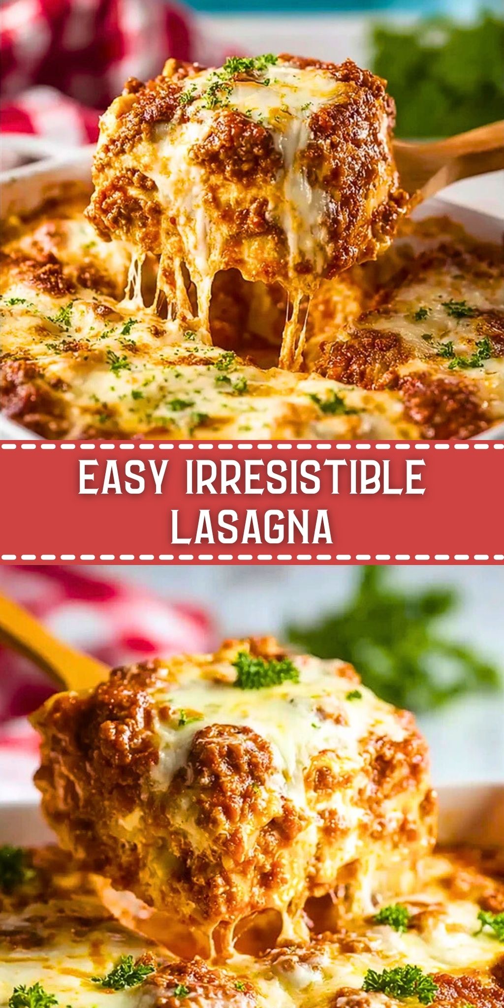 This Easy Irresistible Lasagna combines savory meat sauce, creamy ricotta, and gooey mozzarella in layers of tender noodles. Perfect for cozy dinners or meal prep, it’s a satisfying classic that’s easier than it looks.