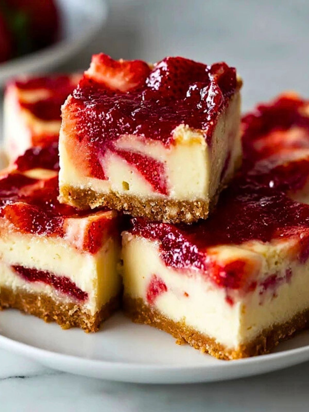 With a buttery almond flour crust, a velvety cream cheese center, and a vibrant strawberry swirl on top, these bars are an elegant solution to “I need dessert now.” Whether you’re prepping for a brunch, bringing a treat to a gathering, or just need something sweet in the fridge, this recipe is a go-to. It’s low in carbs, gluten-free, and has that classic cheesecake richness with a fruity twist.