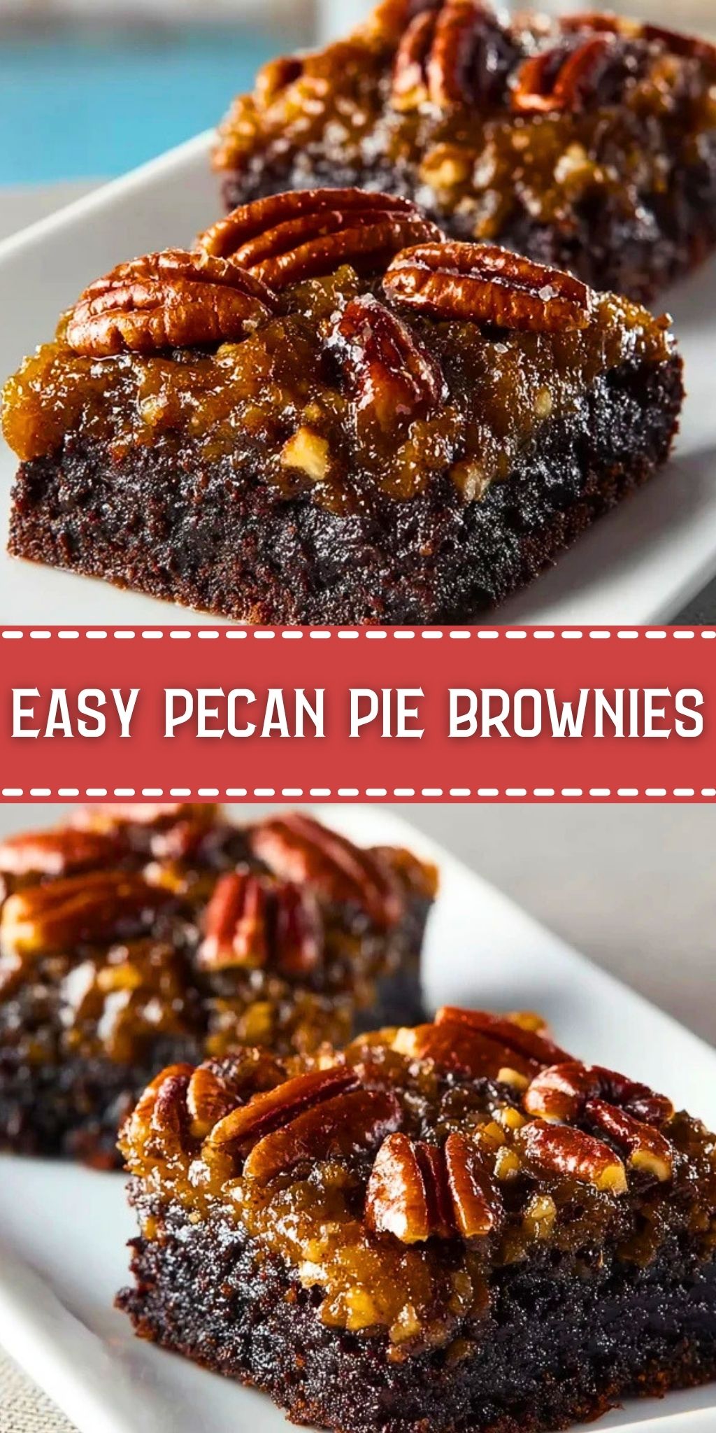 Easy Pecan Pie Brownies are rich, so smaller squares often make the perfect serving size. They are delicious at room temperature, but they are also wonderful slightly warm with a scoop of vanilla ice cream or a spoonful of whipped cream for a more plated dessert. If you are serving them for a holiday table, a light sprinkle of flaky salt on top can balance the sweetness nicely.
