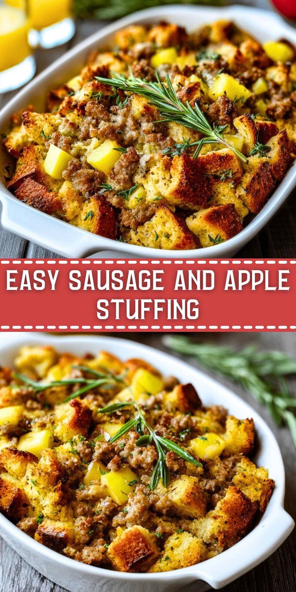 This easy sausage and apple stuffing is a cozy, flavorful side dish packed with savory sausage, tender bread cubes, sweet apple, and fresh herbs. It is an easy recipe for holiday dinners, easy dinner spreads, comfort food menus, and festive food ideas when you want a classic side with rich texture and warm seasonal flavor.