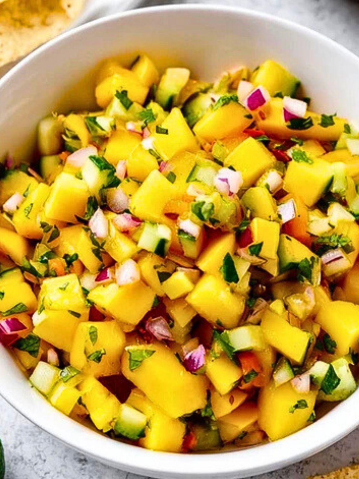 This mango salsa is best served chilled. Let it sit for 10–15 minutes in the fridge after mixing so the flavors can meld beautifully. It’s the perfect topping for grilled fish, chicken tacos, or a vibrant addition to your party chip platter.