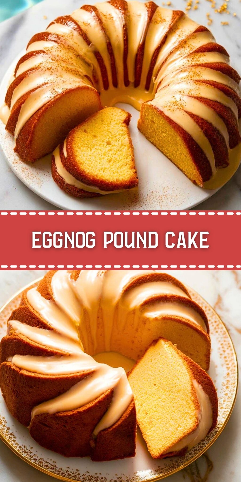10. For the glaze: Whisk powdered sugar, eggnog, and vanilla until smooth. Drizzle over the cooled cake before serving.