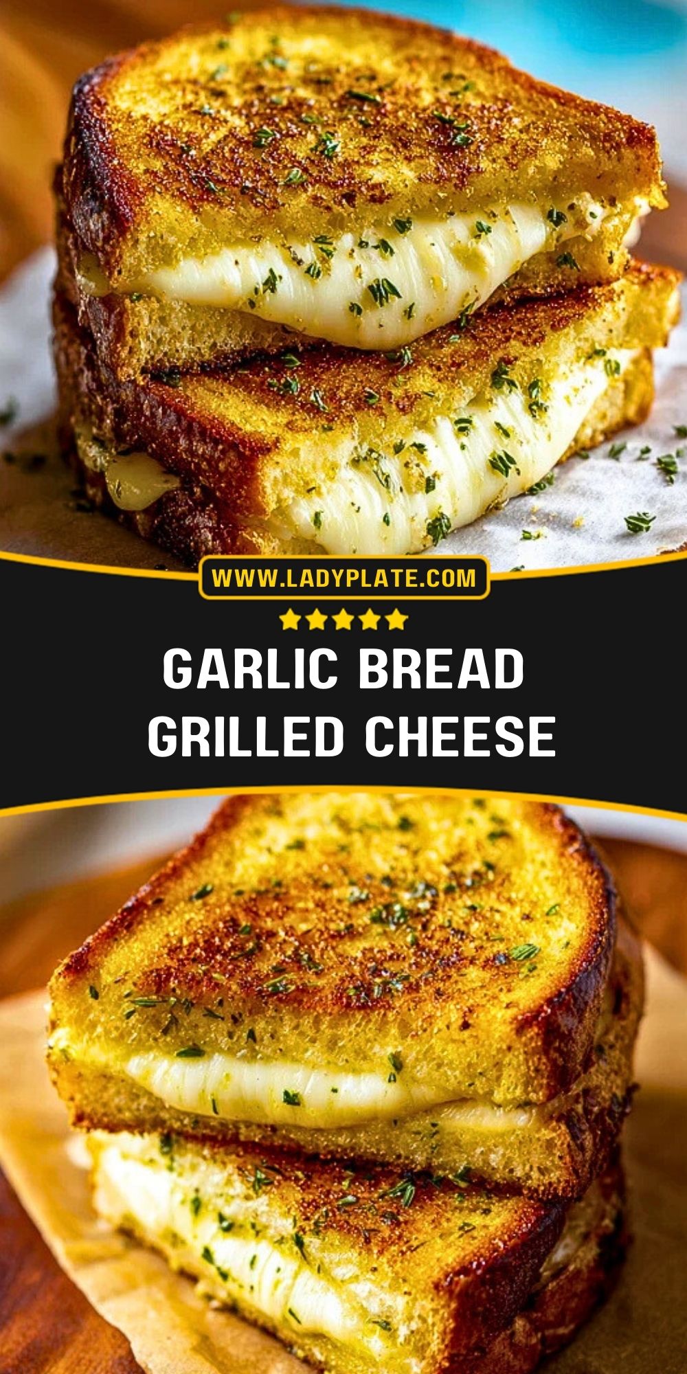 Serve your Garlic Bread Grilled Cheese hot and fresh off the skillet—that’s when it’s at peak gooey perfection. Pair it with a bowl of tomato soup, a simple side salad, or crunchy pickles for contrast.