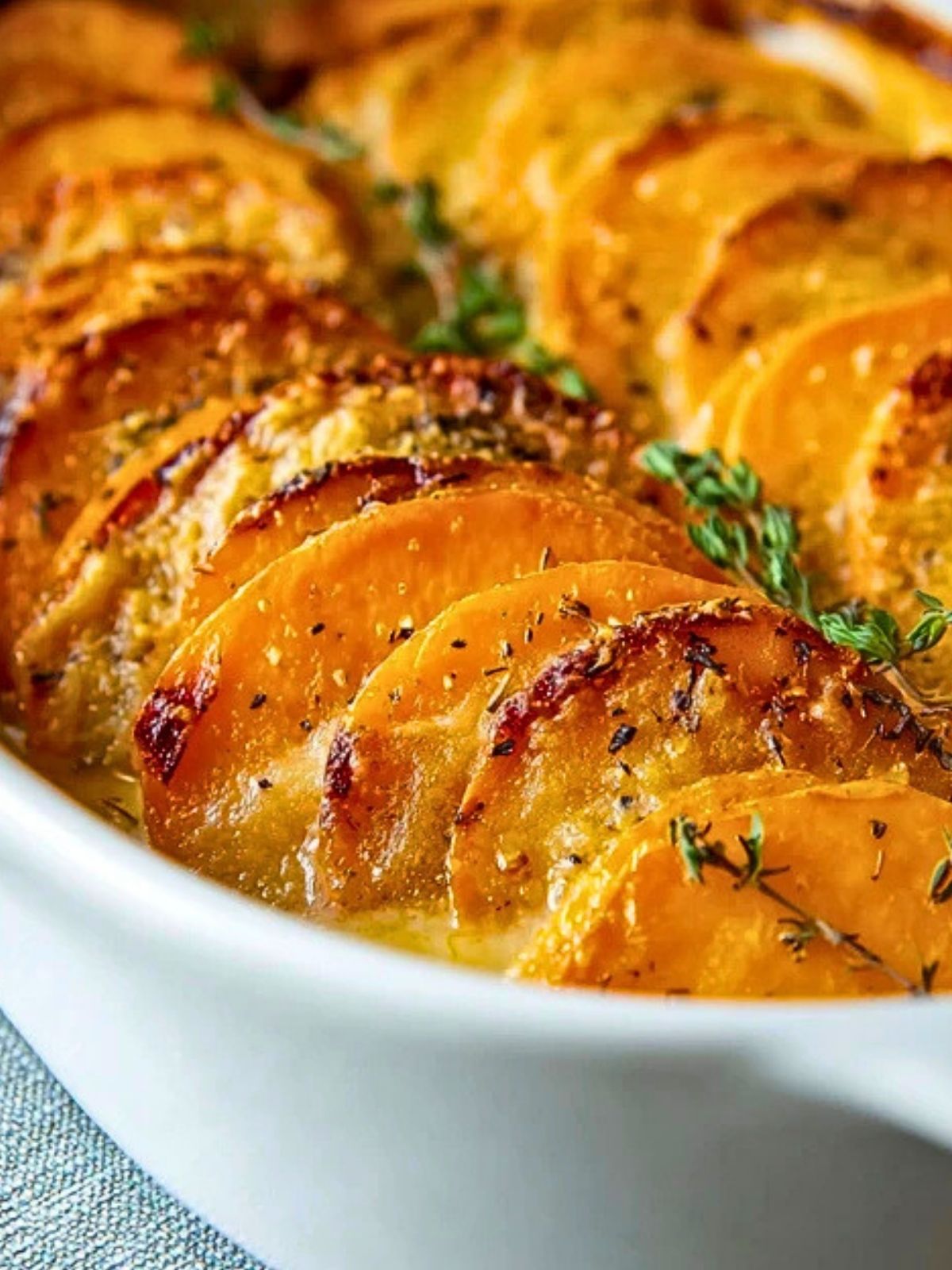 Imagine tender rounds of sweet potato baked until soft and golden, swimming in a garlic-infused cream sauce and crowned with a crisp, caramelized top. It’s the kind of dish that makes guests pause mid-bite and ask for the recipe. Whether you’re cooking for family or entertaining, this one delivers warm satisfaction in every spoonful.