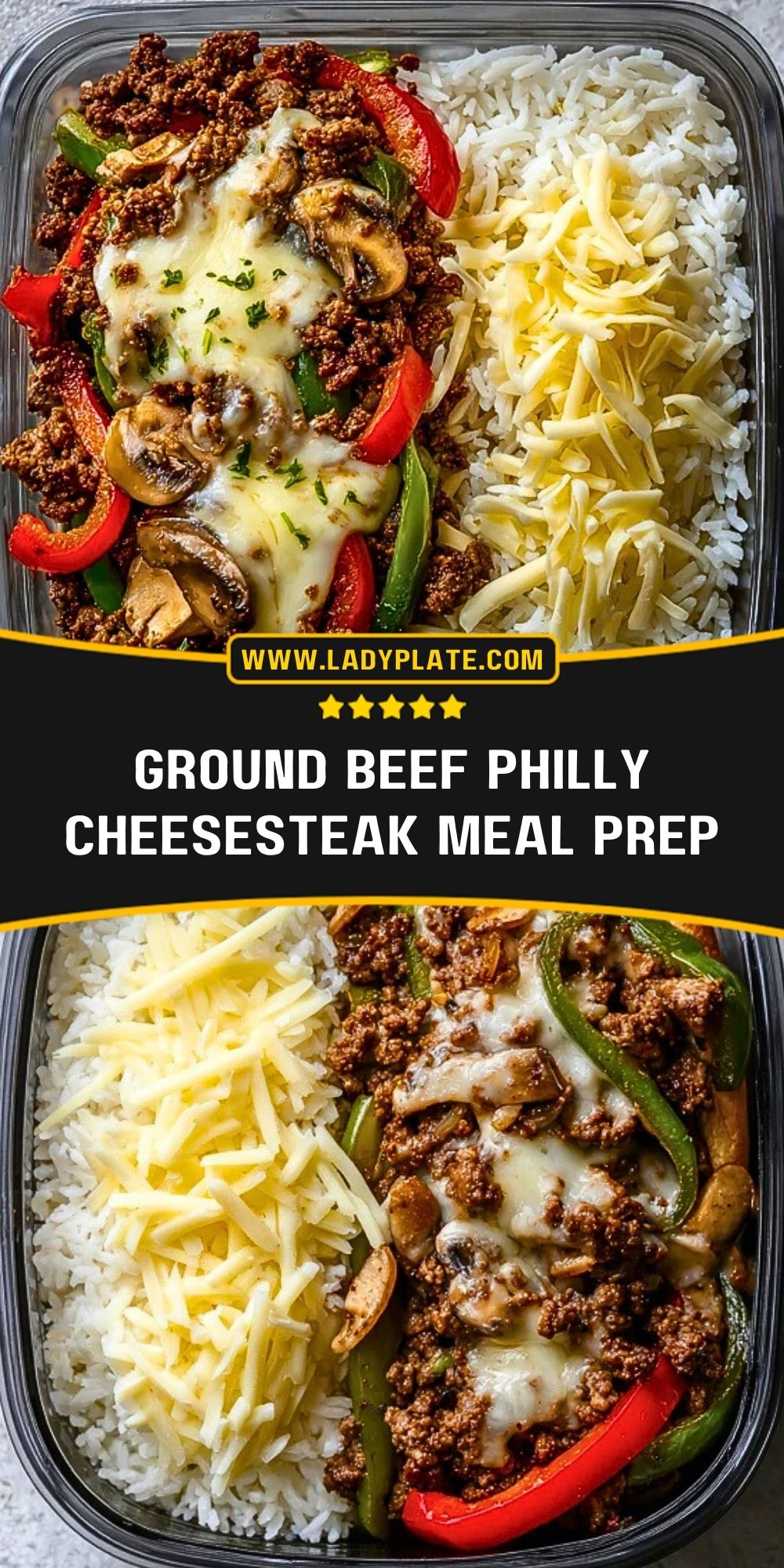 Keywords: philly cheesesteak, ground beef meal prep, cheesy rice