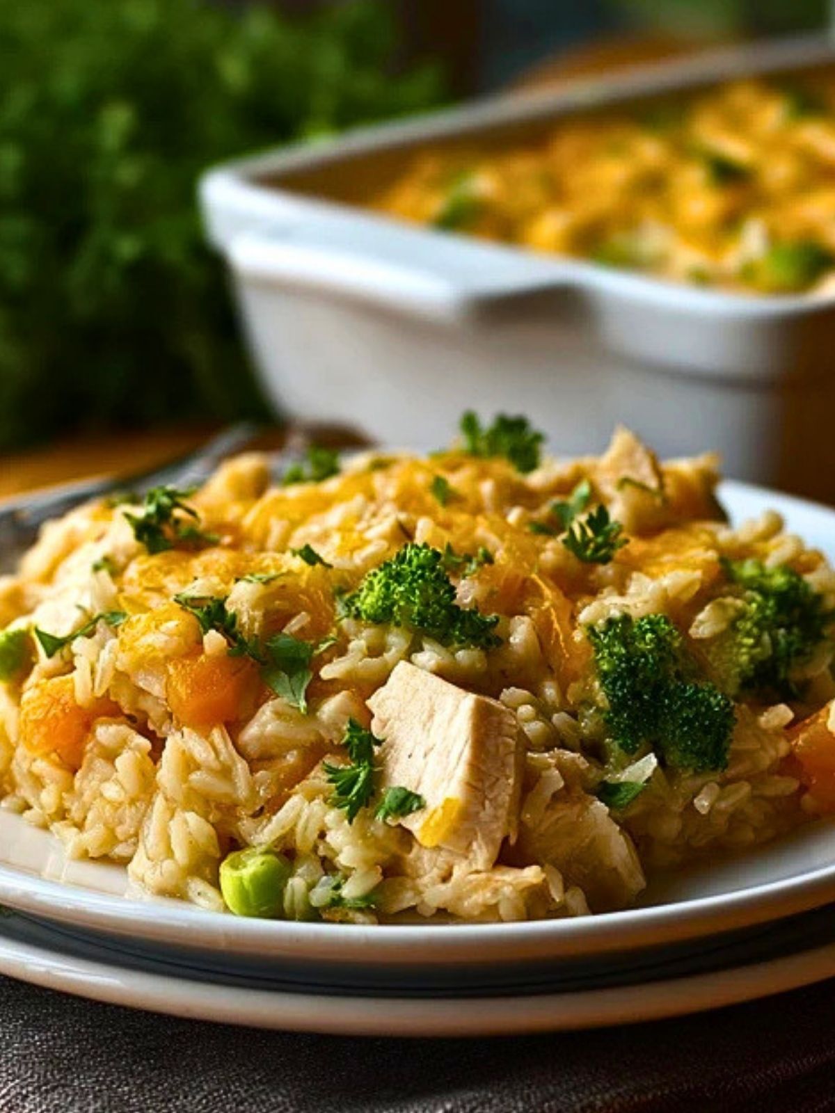 This healthy chicken and rice casserole is a cozy, wholesome easy dinner packed with tender chicken, brown rice, broccoli, and a creamy lighter sauce. It is perfect for busy weeknights, meal prep, family dinner ideas, and anyone looking for a comforting easy recipe with balanced ingredients, healthy dinner ideas, and satisfying food ideas in one baking dish.