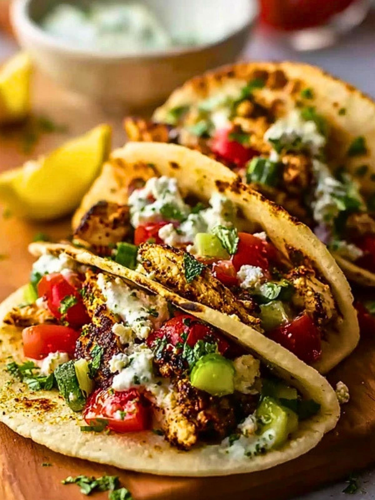 These Healthy Mediterranean Chicken Tacos are a fresh, easy recipe packed with juicy seasoned chicken, crisp cucumber, sweet tomatoes, tangy feta, and creamy yogurt sauce. They are perfect for a quick breakfast, easy dinner, healthy snack, lunch prep, and simple food ideas when you want bright Mediterranean flavors in a satisfying meal.