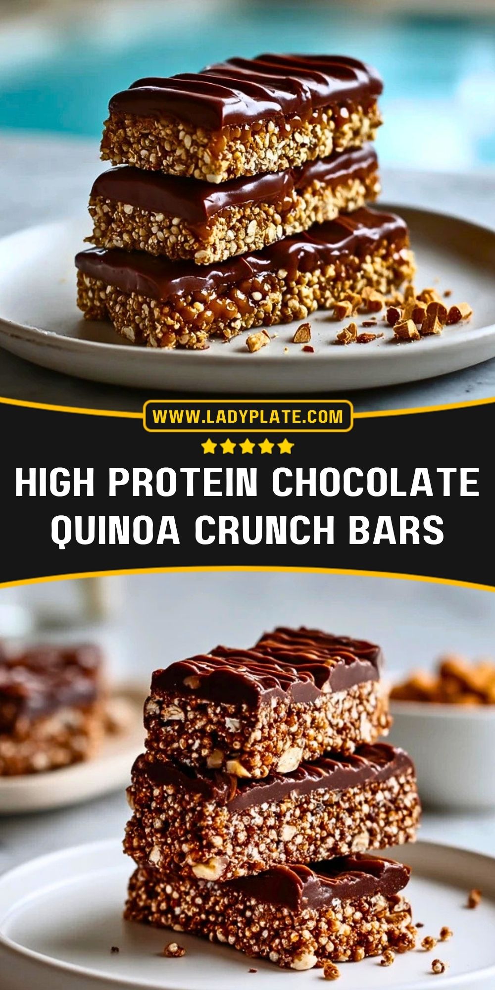 You can save these High Protein Chocolate Quinoa Crunch Bars to your snack boards for later and keep them handy for busy weeks. For even more daily recipe inspiration, take a look at my LadyPlate Pinterest.