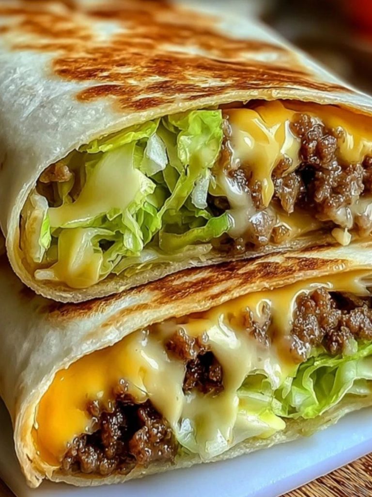 If you’re prepping ahead, store the components separately: cooked beef, chopped lettuce, shredded cheese, and the sauce can all be kept in airtight containers in the fridge. Assembled wraps can also be stored wrapped in foil and reheated on a skillet or in a toaster oven to restore crispness. Avoid microwaving if you want to keep that golden crust.