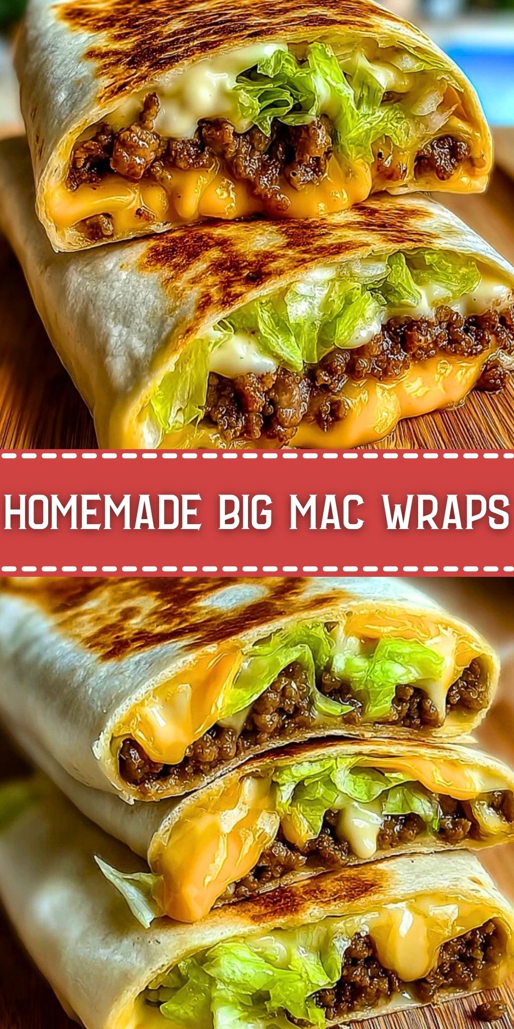 These Homemade Big Mac Wraps are the ultimate fusion of fast food flavor and homemade comfort. Packed with juicy seasoned beef, melted cheese, crisp lettuce, pickles, and a tangy secret sauce, all wrapped in a golden toasted tortilla. Perfect for quick lunches, casual dinners, or a delicious meal-prep option.