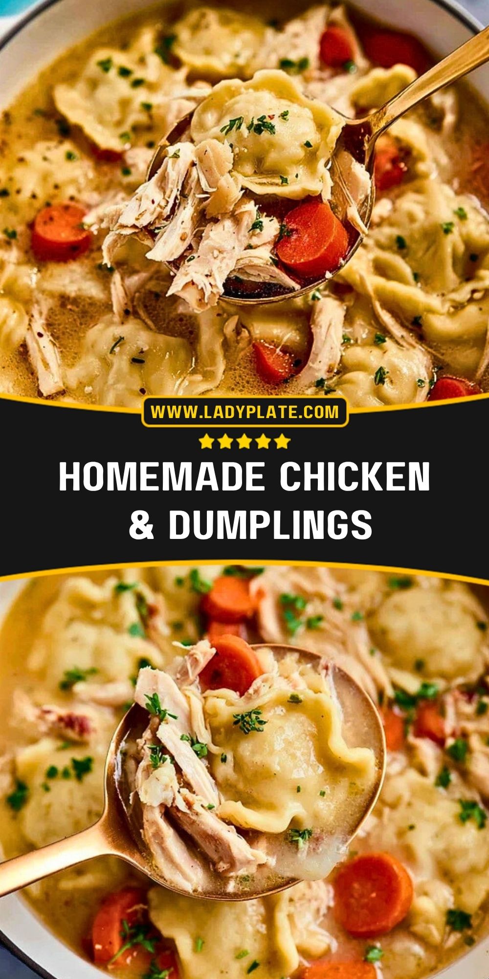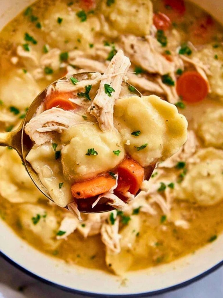 This Homemade Chicken & Dumplings recipe is a cozy, comforting classic made from tender shredded chicken, a rich savory broth, and soft, fluffy dumplings. Perfect for family dinners or cold nights, it delivers warmth and satisfaction in every bite.